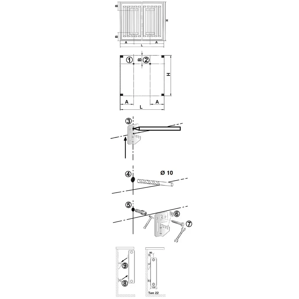 • L-кронштейни для верхнього кріплення за петлі, шт: 2