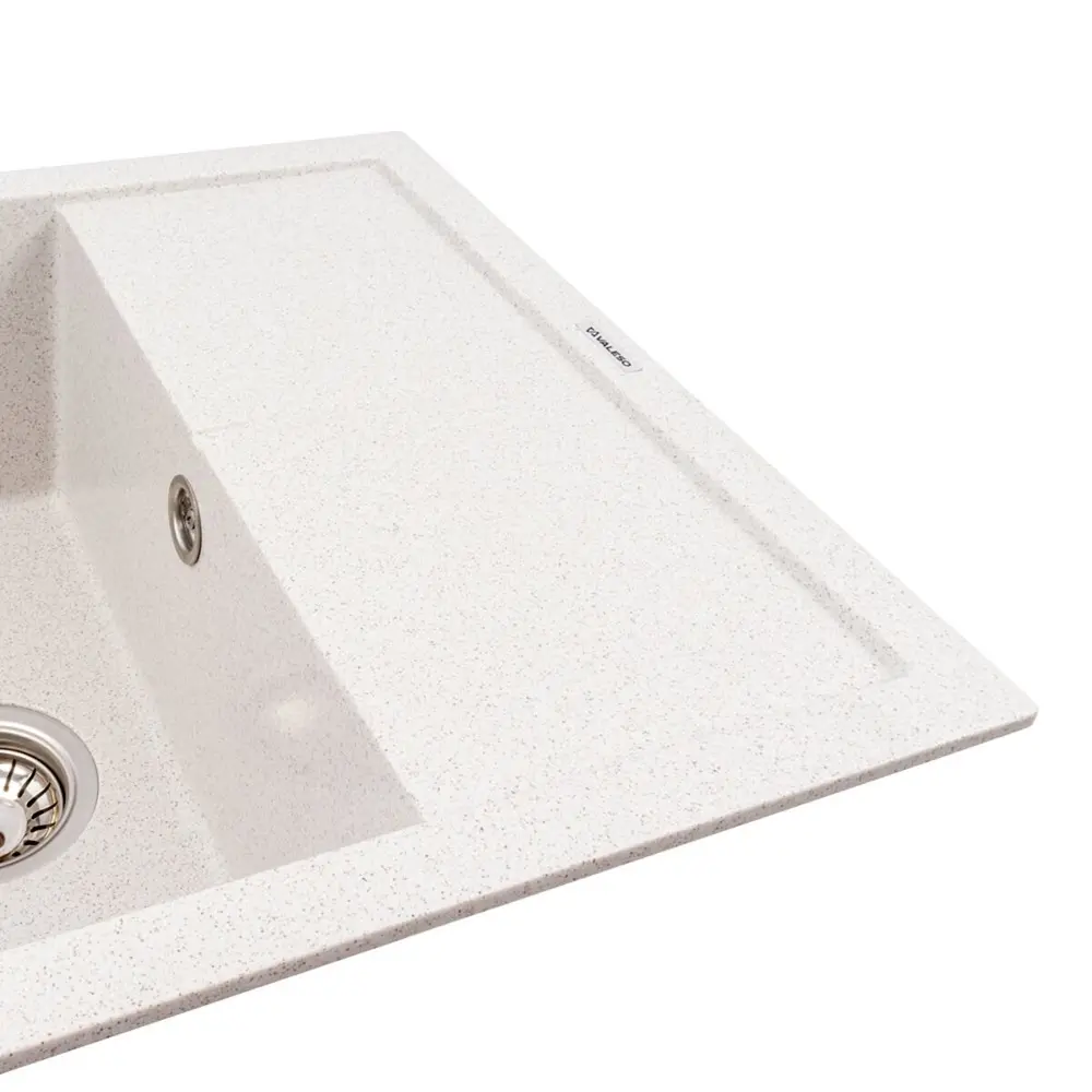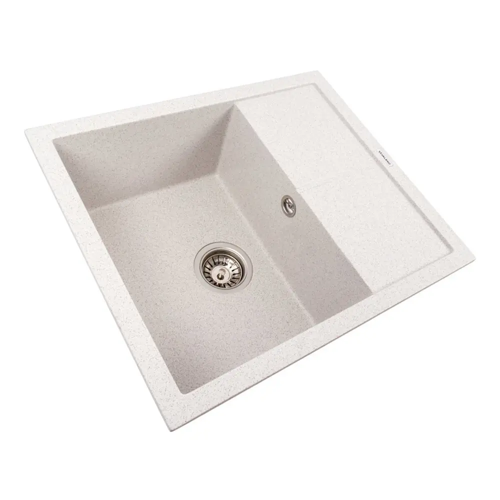 Изготовленная из искусственного камня, эта матовая мойка обладает исключительной устойчивостью к царапинам, воздействию высоких температур, пятнам и выцветанию. Она будет сохранять свой идеальный вид на протяжении многих лет, что подтверждается гарантией в 10 лет. Модель 5850 REYNA предлагает удобную конструкцию: просторная основная чаша (325x435x200 мм), расположенная слева, идеально подходит для крупной посуды, а интегрированная рабочая поверхность (сушка) значительно упрощает ежедневные кухонные процессы. Боковой перелив предотвращает переполнение воды. Гранитная мойка VALESO 5850 REYNA цвета Топаз — это инвестиция в функциональность и элегантность вашей кухни.