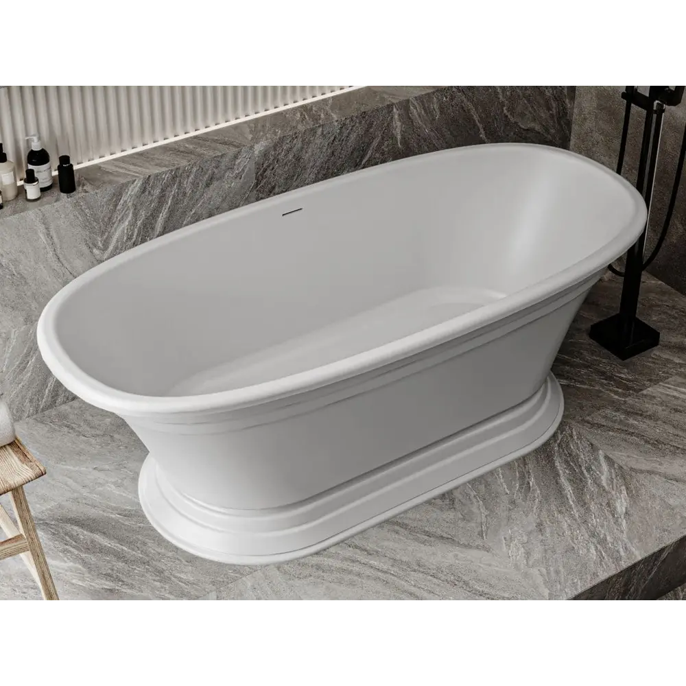 - Довговічність матеріалу. Ванни з литого мармуру є ремонтопридатними, стійкими до барвників і сонячних променів.