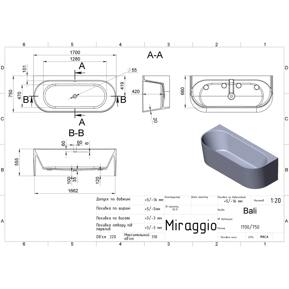 Miraggio пропонує великий вибір ванн із композитних матеріалів. Овальна Ванна BALI MIRASOFT MIRAGGIO з матеріалу Mirasoft Technology - це досконале творіння за дизайном та функціональністю. Ванна ідеально доповнить проєкти сучасних фахівців оформлення інтер'єру. Поверхня ванни - Матова. Тип встановлення ванни - Пристінна.