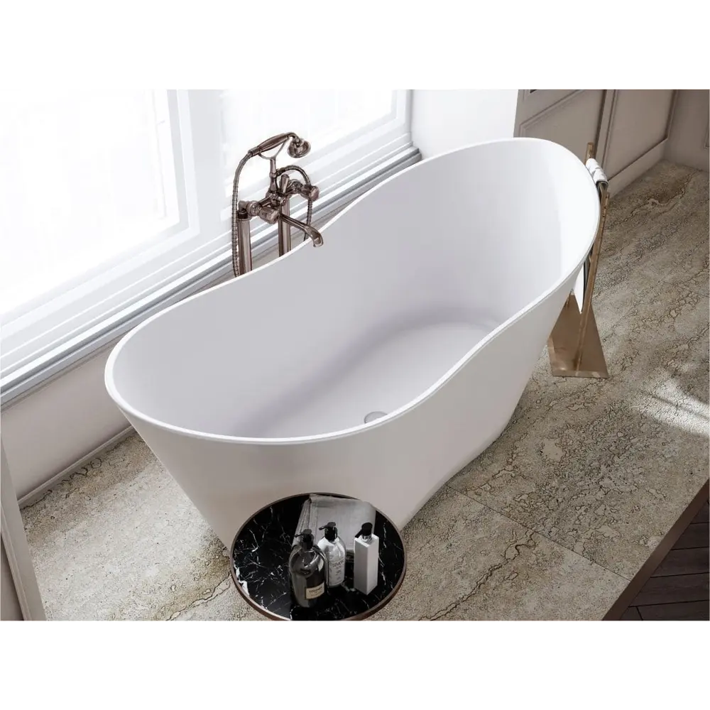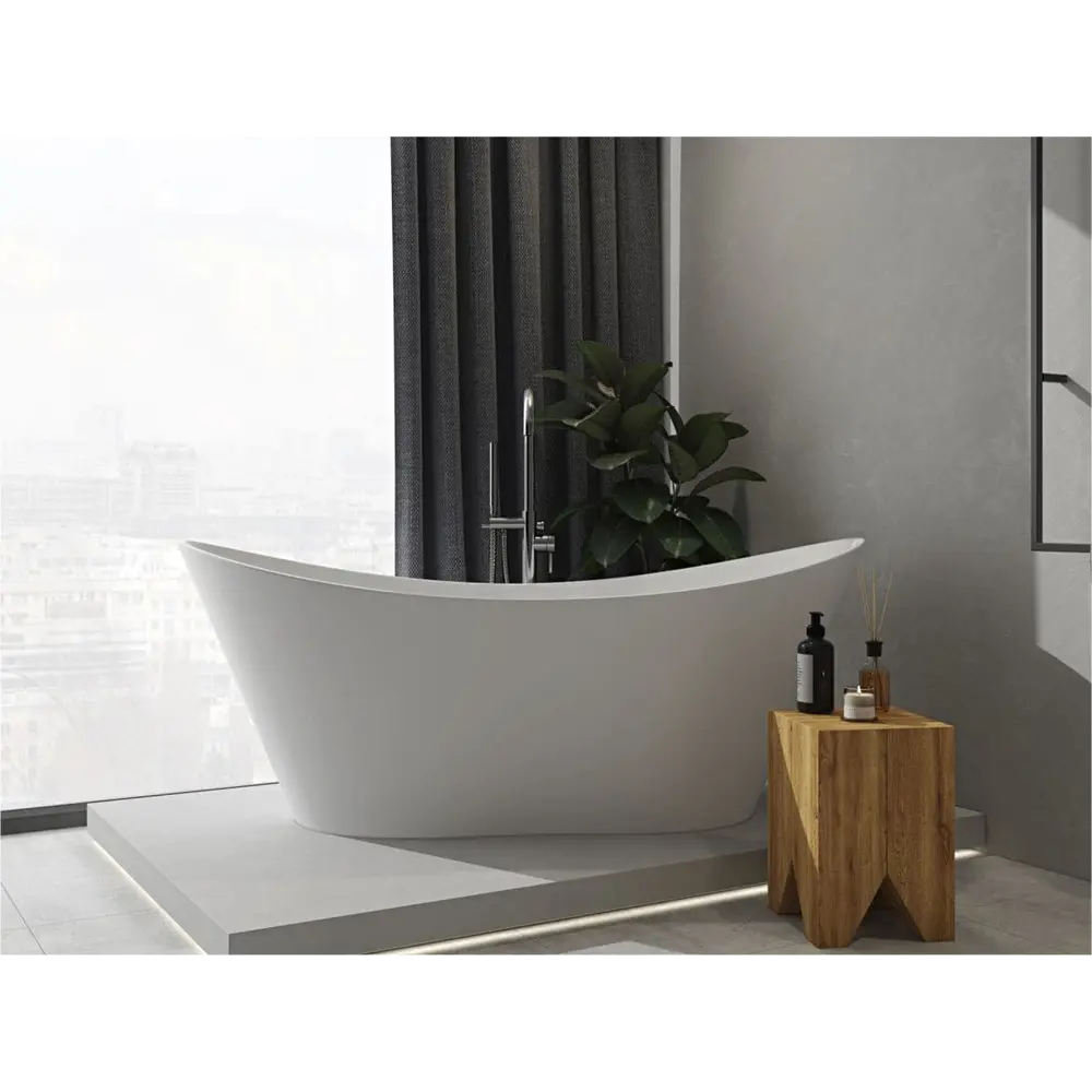 Штучний камінь - міцний і довговічний матеріал. Основним компонентом суміші є мелена мармурова крихта або боксит, які змішують із поліефірними смолами. У структурі ванни відсутні мікропори, що унеможливлює розвиток бактерій у товщі стінок.