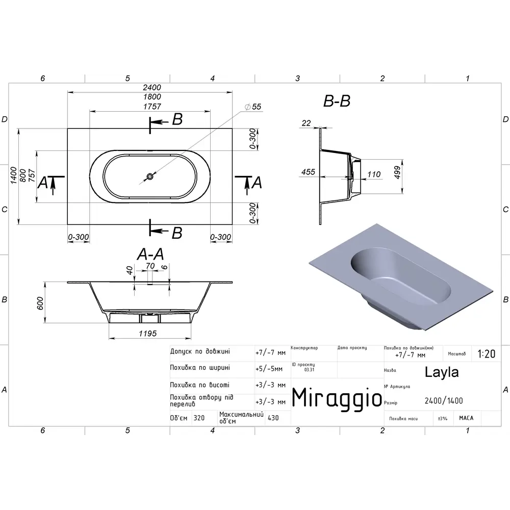 Miraggio пропонує великий вибір ванн із композитних матеріалів. Овальна Ванна LAYLA MIRASOFT MIRAGGIO з матеріалу Mirasoft Technology - це досконале творіння за дизайном та функціональністю. Ванна ідеально доповнить проєкти сучасних фахівців оформлення інтер'єру. Поверхня ванни - Матова. Тип встановлення ванни - Окремостояча.