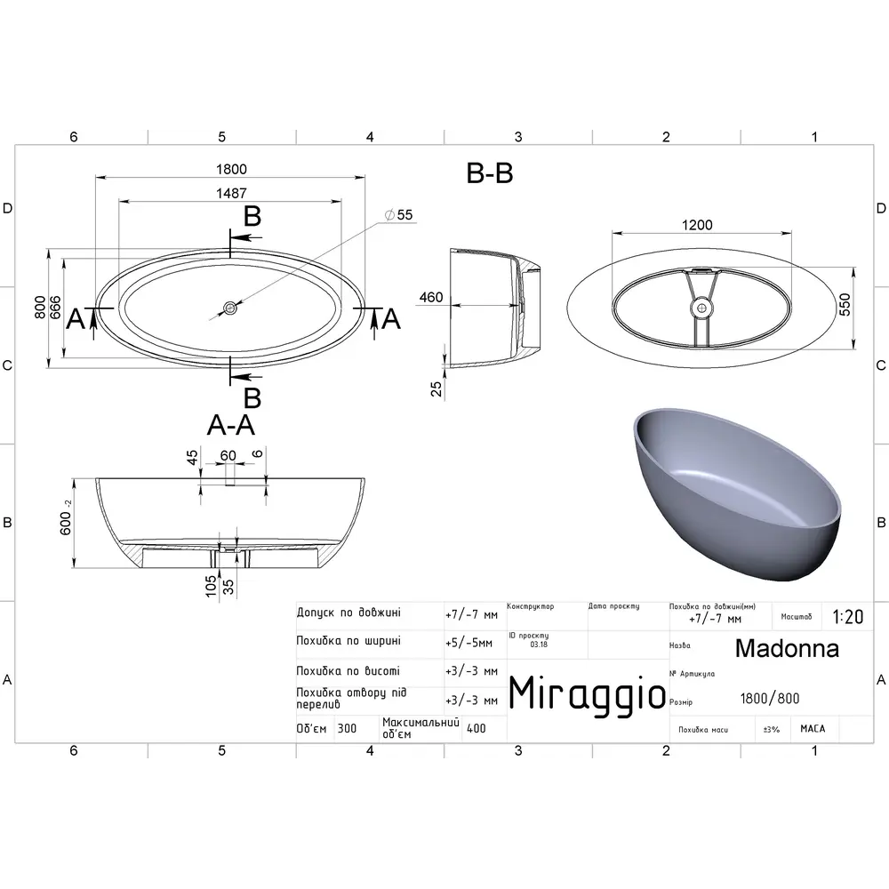 Miraggio пропонує великий вибір ванн із композитних матеріалів. Овальна;Чаша Ванна MADONNA MIRASOFT MIRAGGIO з матеріалу Mirasoft Technology - це досконале творіння за дизайном та функціональністю. Ванна ідеально доповнить проєкти сучасних фахівців оформлення інтер'єру. Поверхня ванни - Матова. Тип встановлення ванни - Окремостояча.
