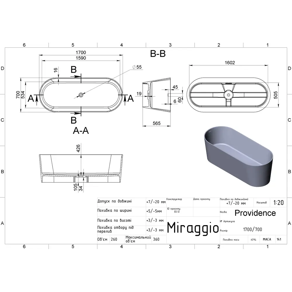 Miraggio пропонує великий вибір ванн із композитних матеріалів. Овальна;Чаша Ванна PROVIDENCE MIRASOFT MIRAGGIO з матеріалу Mirasoft Technology - це досконале творіння за дизайном та функціональністю. Ванна ідеально доповнить проєкти сучасних фахівців оформлення інтер'єру. Поверхня ванни - Матова. Тип встановлення ванни - Окремостояча.