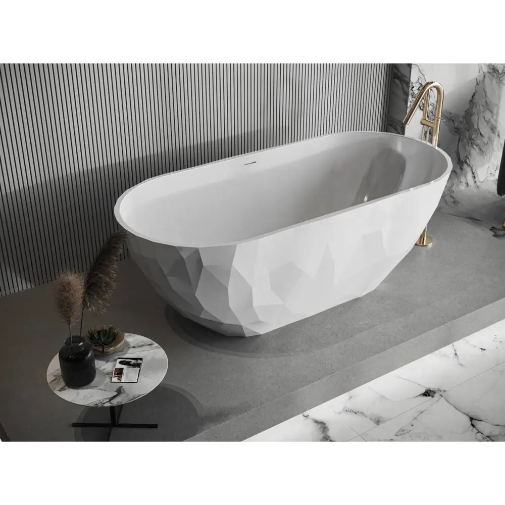 Штучний камінь - міцний і довговічний матеріал. Основним компонентом суміші є мелена мармурова крихта або боксит, які змішують із поліефірними смолами. У структурі ванни відсутні мікропори, що унеможливлює розвиток бактерій у товщі стінок.