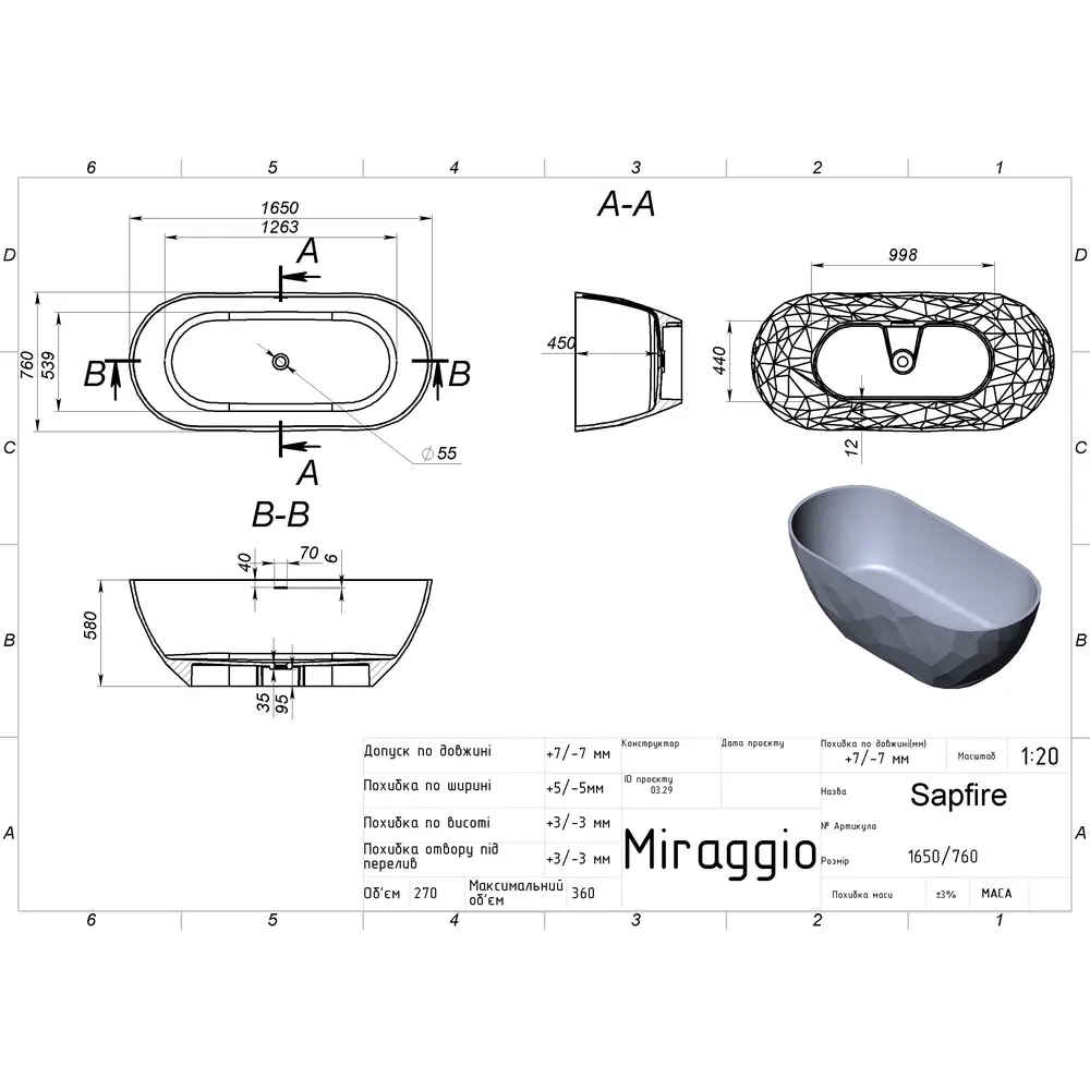 Miraggio пропонує великий вибір ванн із композитних матеріалів. Овальна;Чаша Ванна SAPFIRE MIRASOFT MIRAGGIO з матеріалу Mirasoft Technology - це досконале творіння за дизайном та функціональністю. Ванна ідеально доповнить проєкти сучасних фахівців оформлення інтер'єру. Поверхня ванни - Матова. Тип встановлення ванни - Окремостояча.