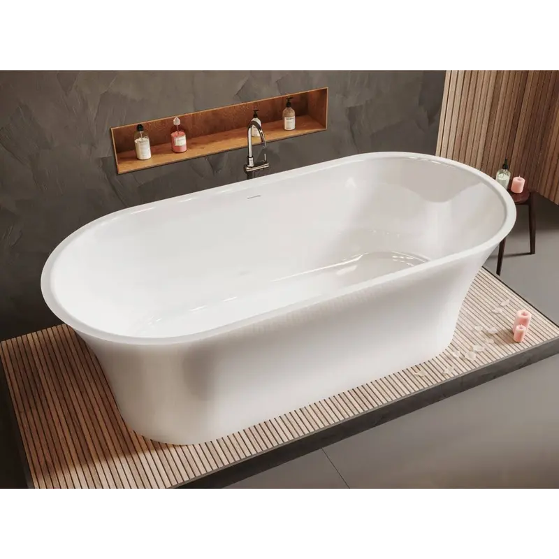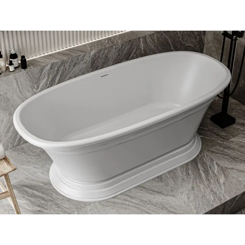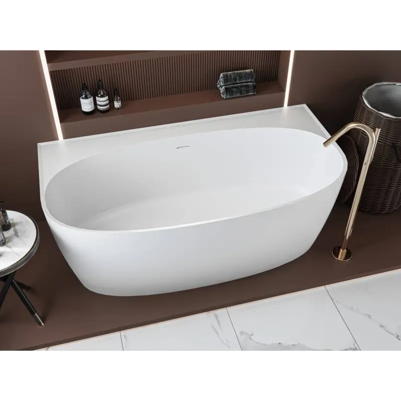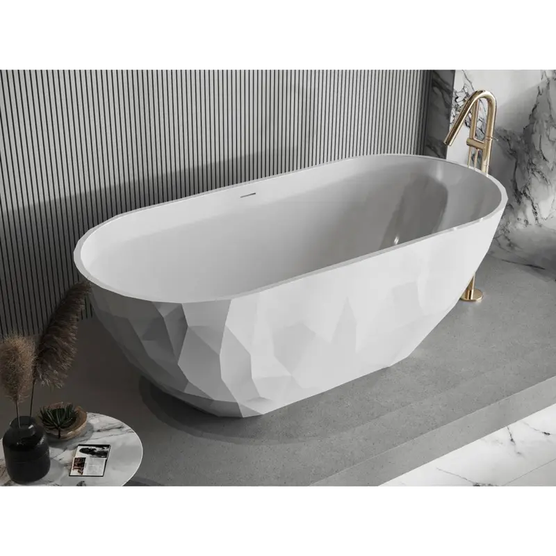 • Кам’яні ванни – ексклюзивні та довговічні. Виготовляються з литого мармуру, штучного каменю або композитів. Вони виглядають розкішно, приємні на дотик і зберігають температуру води надзвичайно довго.
