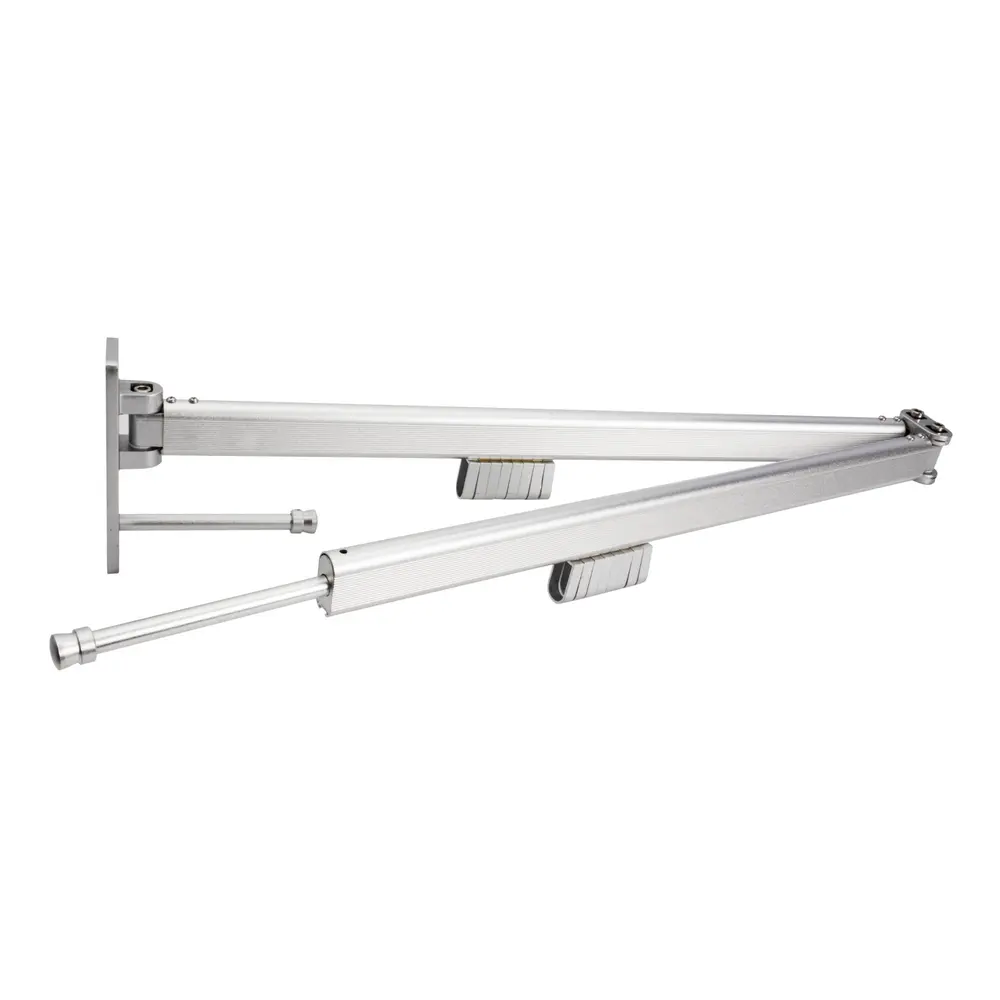 Вешалка изготовлена из высококачественного алюминия, что обеспечивает прочность и долговечность. Материал также легкий, что делает вешалку удобной для переноски и хранения. Она имеет серебряный цвет, что придает современности и элегантности вашему пространству.