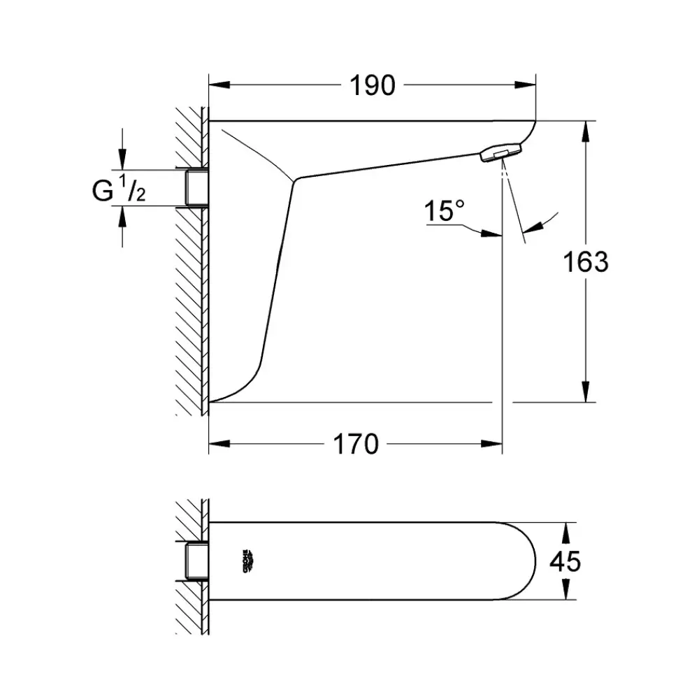 Внешняя часть бесконтактного крана для раковины Grohe Euroeco Cosmopolitan E 36274000 для холодной или предварительно смешанной воды, изготовлена из высококачественной латуни. Управление происходит с помощью инфракрасного датчика движения. Представлена в виде излива и накладной панели с хромированное глянцевой поверхностью. Для установки требуется скрытая часть смесителя, которая не входит в комплект поставки. Благодаря скрытом монтажа все коммуникации спрятаны, что позволяет сэкономить место в ванной.