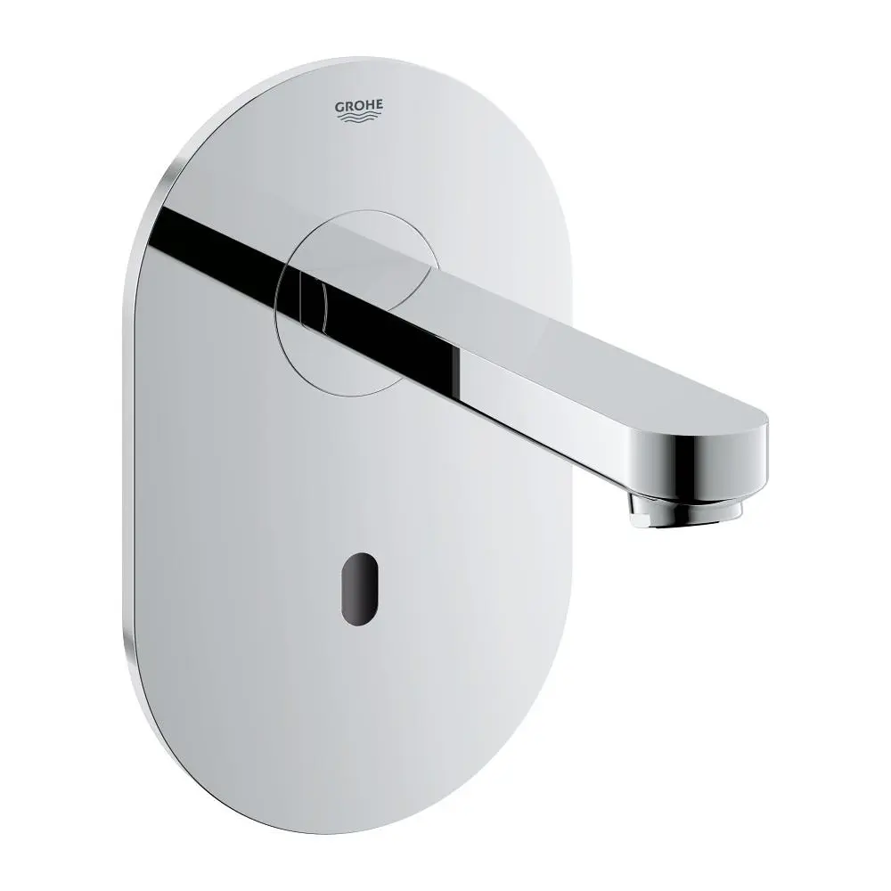 Внешняя часть крана для раковины Grohe Euroeco Cosmopolitan E 36410000 для холодной или предварительно смешанной воды, изготовлена из высококачественной латуни. Управление происходит с помощью инфракрасного датчика движения. Представлена в виде излива и накладной панели с хромированное глянцевой поверхностью. Для установки требуется скрытая часть смесителя, которая не входит в комплект поставки. Благодаря скрытом монтажа все коммуникации спрятаны.
