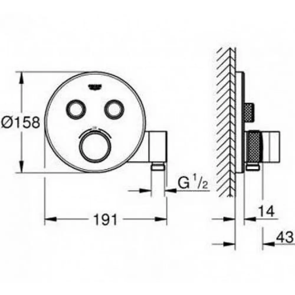 Внутрішня частина термостатичного змішувача для душу Grohe Grohtherm SmartControl 29120000 додасть естетичного вигляду інтер‘єру ванної кімнати, а міцна хромована поверхня збереже зовнішній вигляд змішувача на довгі роки. Зовнішня частина виготовлена з високоякісної латуні, яка стійка до впливу корозії. Прихована частина Grohe Rapido SmartBox 35600000 купується окремо. Завдяки системі Grohe QuickFix виконати монтаж даного комплекту можна без використання кріплення та без зусиль.