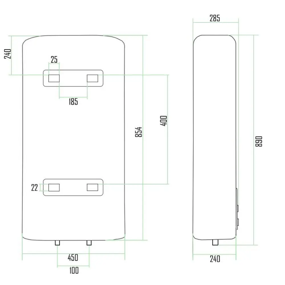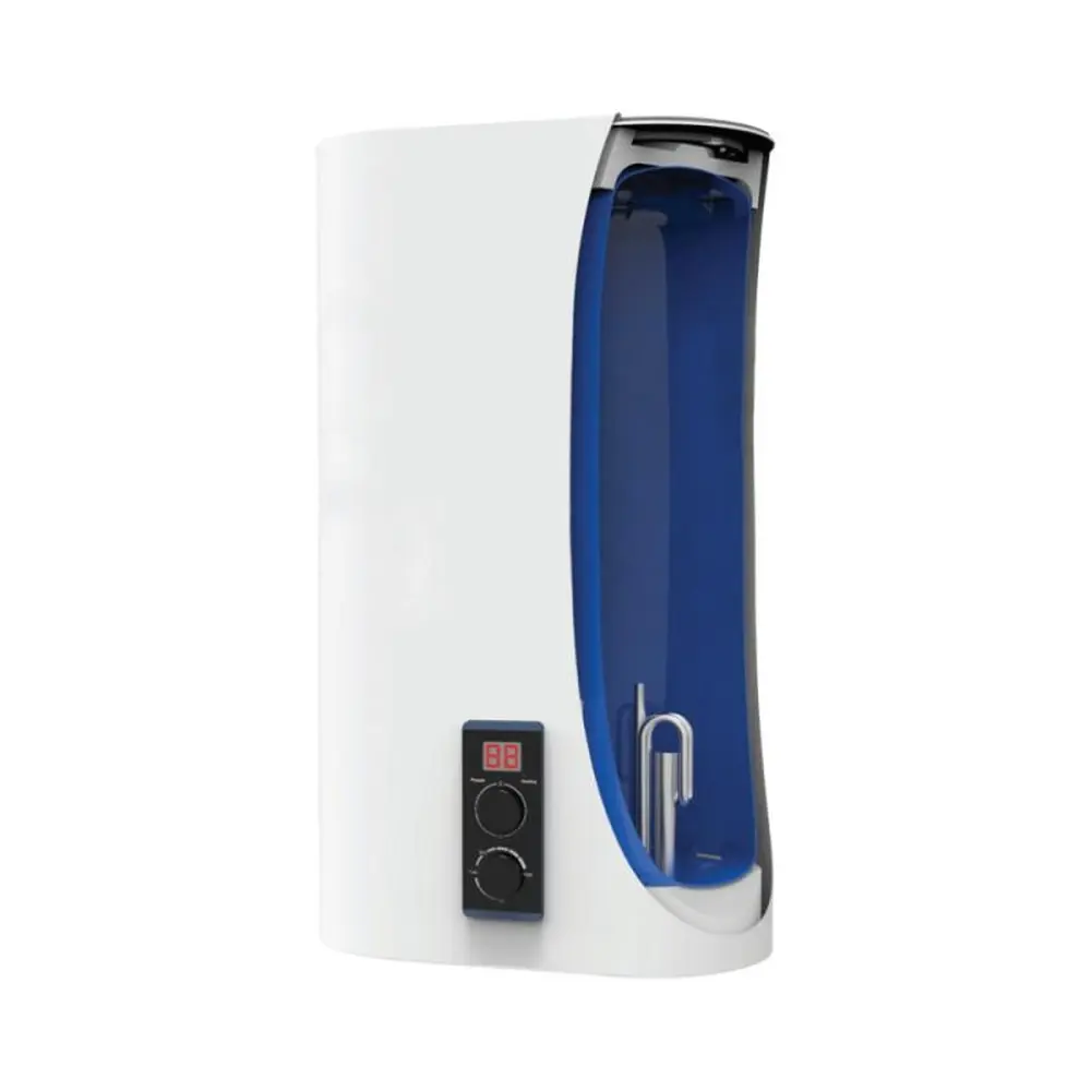 Водонагрівач Thermo Alliance 50 л, мокрий ТЕН 2 кВт (0,8+1,2) DT50V20GPD виконує завдання підігріву води для господарсько-побутових потреб. Всередині плаского прямокутного корпусу розташовані 2 нагрівальних елементи потужністю 1200 й 800 Вт. Поверхню бака, яка контактує з водою, захищають від процесів корозії шар покриття з емалі та два магнієві аноди. Панель керування з дисплеєм індикації температури. Такий бойлер можна розмістити у вертикальній ніші або у шафі. Товщина внутрішнього бака - 2 мм.