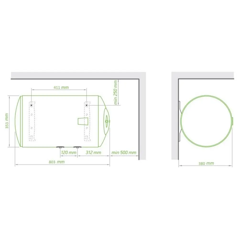 Водонагрівач Tesy Bilight Slim 50 л, мокрий ТЕН 2,0 кВт (GCH503520B12TSR) 300387 сконструйований для горизонтального встановлення. Після монтажу на стіну патрубки підключення до системи водопостачання повинні знаходитися внизу, клеми підключення електричної частини — з правого боку. Склокерамічне покриття внутрішньої поверхні резервуара для води забезпечує високу гігієнічність, а також є антикорозійним захистом разом з магнієвим анодом.