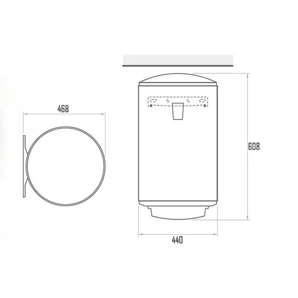 Водонагрівач Tesy DRY 50 л, сухий ТЕН 2х0,8 кВт (CTV504416DD06TR) 305096 поставляється в комплекті з кріпленнями та призначений для вертикального встановлення на стіну. Внутрішня поверхня бака захищена від корозії магнієвим анодом і склокерамічним покриттям. Мінімальний тиск у водопровідній системі, при якому може працювати бойлер, становить 0,5 бар. Глибина виробу разом з урахуванням кріпильних елементів становить 46,8 см. Електроживлення — від мережі 220 В, 50 Гц.