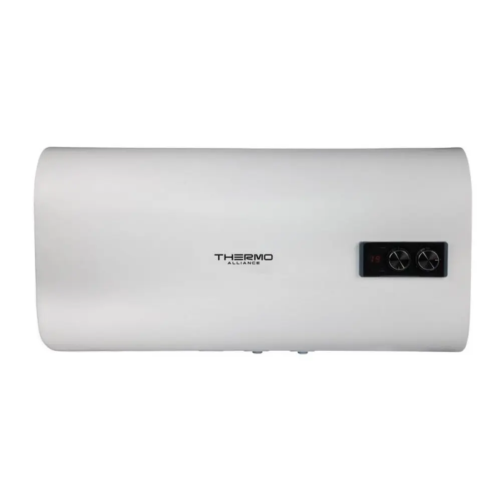 Водонагрівач Thermo Alliance 100 л, мокрий ТЕН 2 кВт (0,8+1,2) DT100H20GPD — ідеальне рішення в тих випадках, коли вільний простір для монтажу обмежено. З урахуванням елементів кріплення габаритний розмір по глибині становить всього 325 мм. Тип установки — горизонтальний, патрубки для підключення води розташовані внизу. Внутрішня поверхня бака вкрита емаллю високої якості. Потужний нагрівальний елемент швидко нагріває воду і підтримує її температуру. Товщина внутрішнього бака - 2 мм.