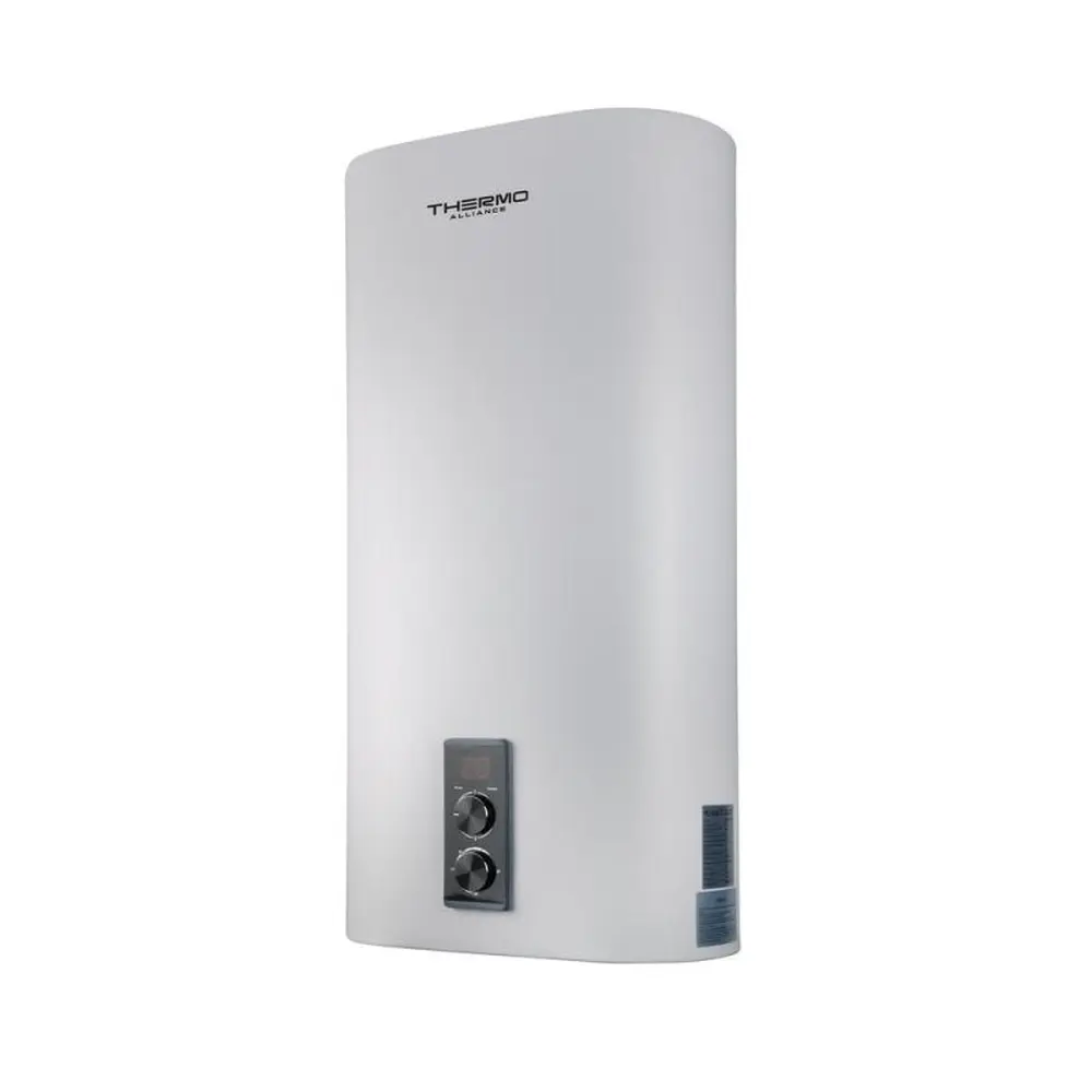 Водонагрівач Thermo Alliance 50 л, сухий ТЕН 2 кВт (0,8+1,2) DT50V20GPDD/2 забезпечить подачу гарячої води для господарсько-побутових потреб. Плоска форма корпусу дозволяє розмістити пристрій там, де простір для монтажу обмежений (наприклад, в неглибокій вертикальної ніші в стіні). На внутрішню поверхню бака нанесено високоякісне емальоване покриття. Бойлер обладнаний зручною панеллю керування з дисплеєм, швидко нагріває і підтримує необхідну температуру води. Товщина внутрішнього бака - 2 мм.