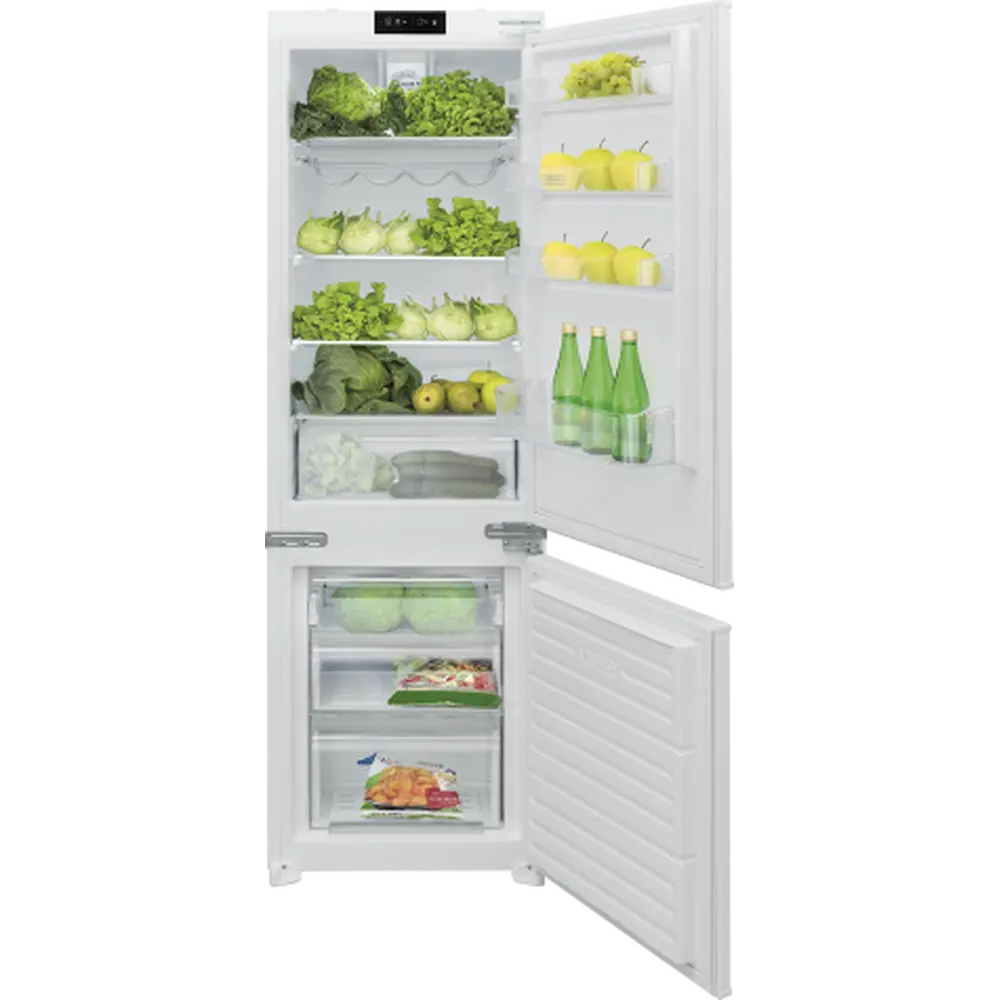 Вбудований холодильник з морозильною камерою KERNAU KBR 17133 S NF загальною ємністю 243 л. Прилад оснащений сучасним електронним управлінням по світлодіодним дисплеєм. Це рішення дозволяє користувачеві безпроблемно і точно управляти температурою всередині пристрою. Також у Вас є можливість регулювати термостат. Автоматичне розморожування холодильника і освітлення внутрішнього корпусу гарантують свободу і зручність користування пристроєм. Завдяки скриньках для овочів зберігання цих продуктів оптимально довше, а значить довше залишатися свіжими. У холодильнику також тримачі для вина. Це дозволить безпечно охолодити улюблений алкоголь, сік або воду, гарантуючи, що нічого не виллється. Класичний білий зовнішній корпус і просторий внутрішній, робить холодильник не тільки елегантним, але і надзвичайно зручним для користувачів. Він ідеально доповнює в кожну кухню. P>