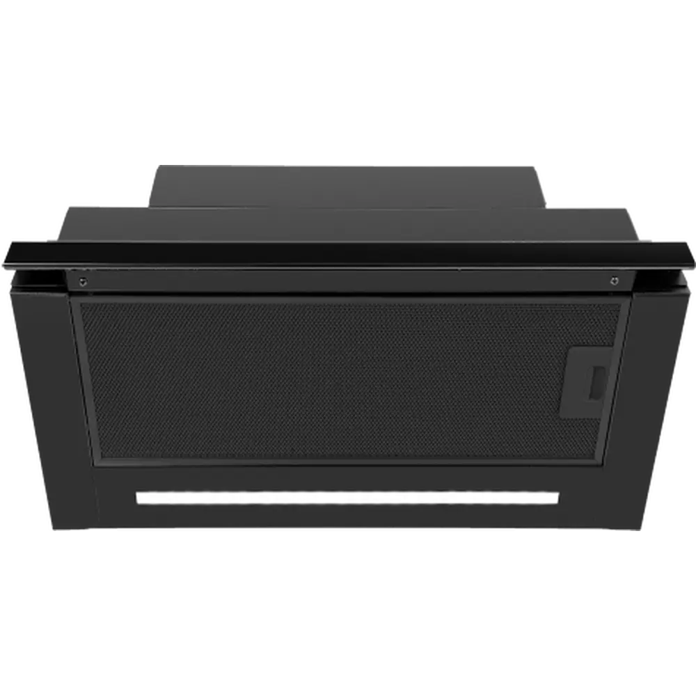 Телескопическая вытяжка устанавливается в кухонный шкаф. Характерным элементом конструкции данной вытяжки является выдвижной ящик, который увеличивает поглощающую поверхность, запускает оборудование и освещение встроенное в вытяжку. Выключения вытяжки происходит посредством установки планки в исходное положение.