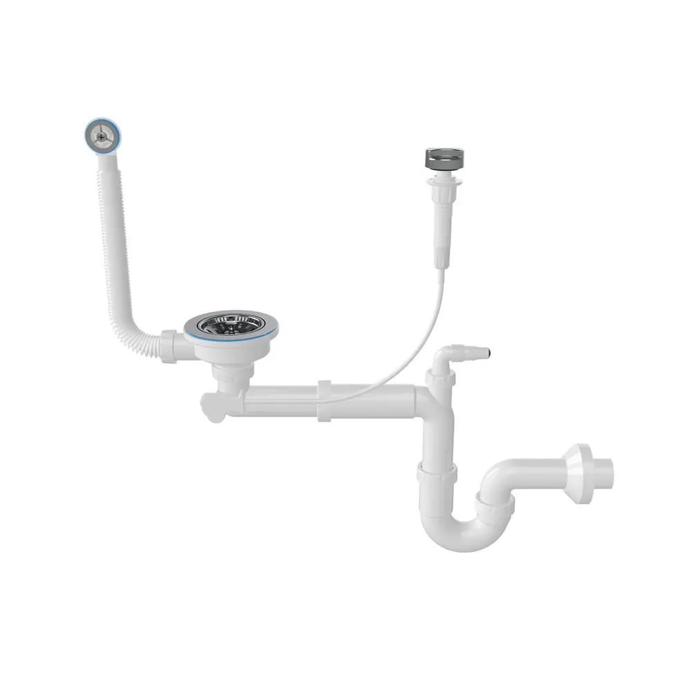 Ще одна вагома перевага цього сифону - його універсальність. Він підходить для встановлення під будь-яку одинарну кухонну раковину, забезпечуючи надійне та безпечне відведення стічних вод. Завдяки своїй компактності, він займає мінімальний простір під раковиною, що дозволяє економити місце в кухні.