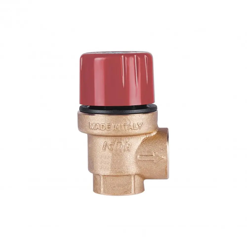 Запобіжний клапан ICMA Арт. 241 застосовується для контролю тиску в системах опалення та водопостачання. При досягненні налаштованого тиску клапан спрацьовує і не дозволяє тиску в системі досягти небезпечних для котла та інших компонентів значень. Налаштування - 2,5 бар, розмір підключення - 1/2".
