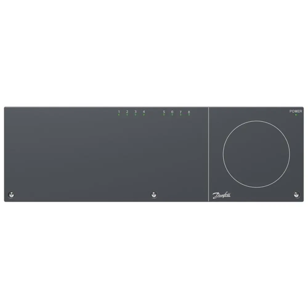Danfoss Icon 230V комутаційний пристрій, призначений для використання в системах водяного підігріву підлоги з використанням терморегуляторів 230 В і термоелектричних приводів. До комутаційного пристрою можна підключити до 14 термоелектричних приводів і до 8 кімнатних терморегуляторів (зон). Оснащений виходом 230 В для циркуляційного насоса і безпотенційним контактом реле («сухий») для керування котлом. Реле активуються, коли один (декілька) терморегуляторів видають сигнал про потребу в опаленні.