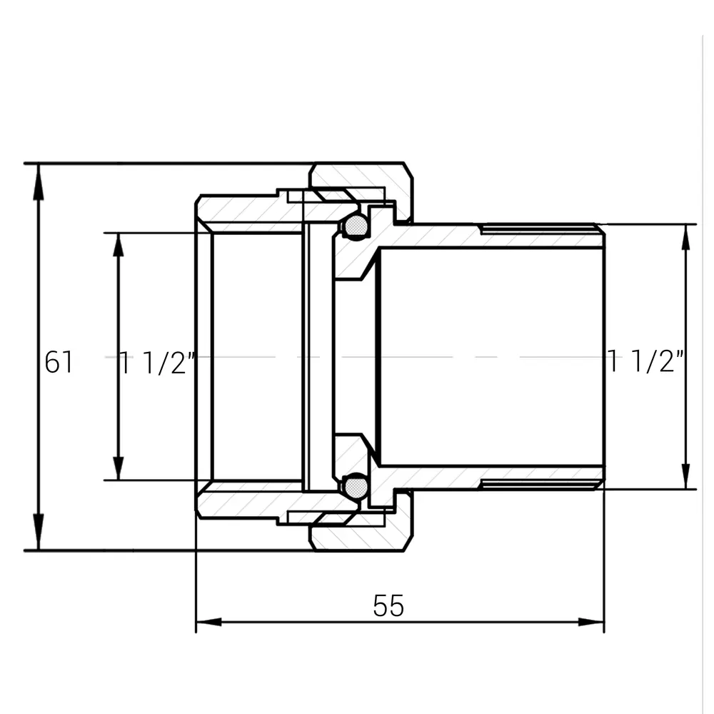 Згін американка пряма латунна 1 1/2″ВР х 1 1/2″ЗР штампована з резиновою прокладкою Б0842А