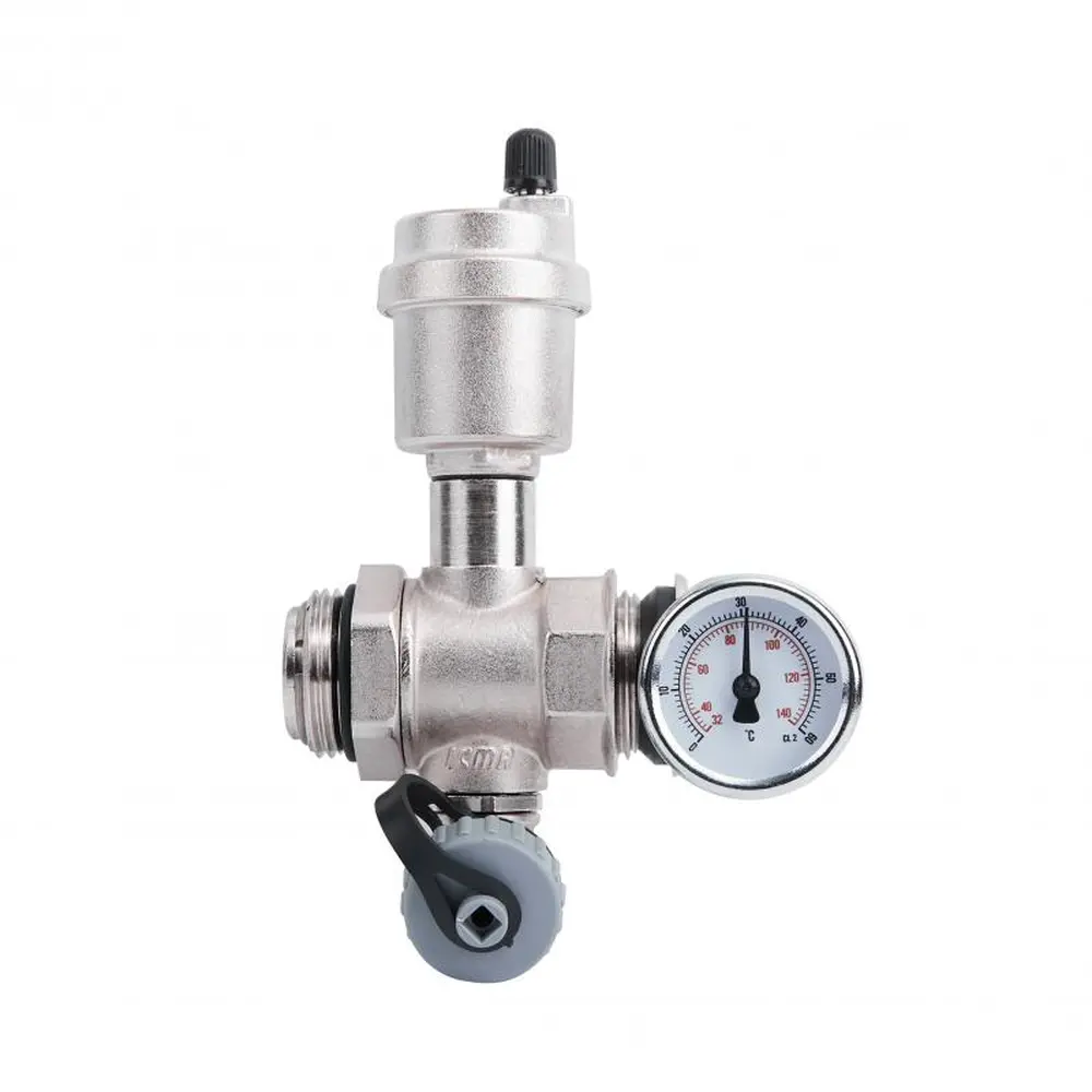Зручна і якісна зливна група. Все в одному — і термометр, і повітровідвідник, і зливний кран. Дуже зручно підключати, різьби точні, не підтікає. Поставив на колектор — працює без нарікань. Рекомендую.