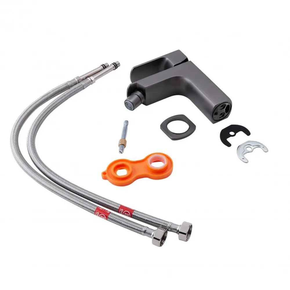 Змішувач, гнучкий підвід, ключ для аератора, кріпильні деталі.