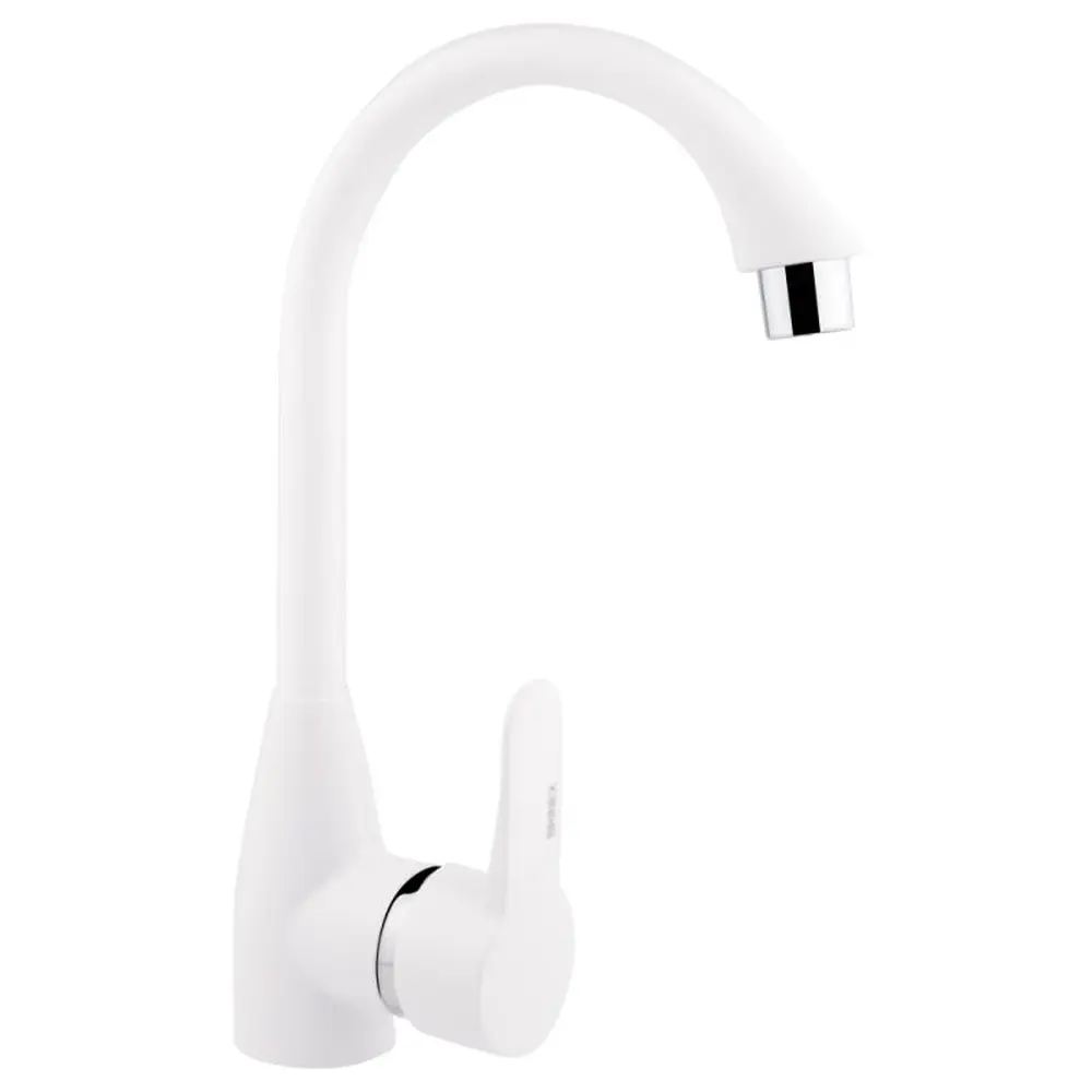 Змішувач для кухні Brinex 35W 007 виготовлений з ABS пластику. Має одноважільне управління, яке регулює натиск холодної та гарячої води. Виконаний в сучасному, стриманому дизайні з білою матовою поверхнею. Такий змішувач можна назвати універсальним, бо він буде ідеально виглядати в будь-якому інтер‘єрі кухні.