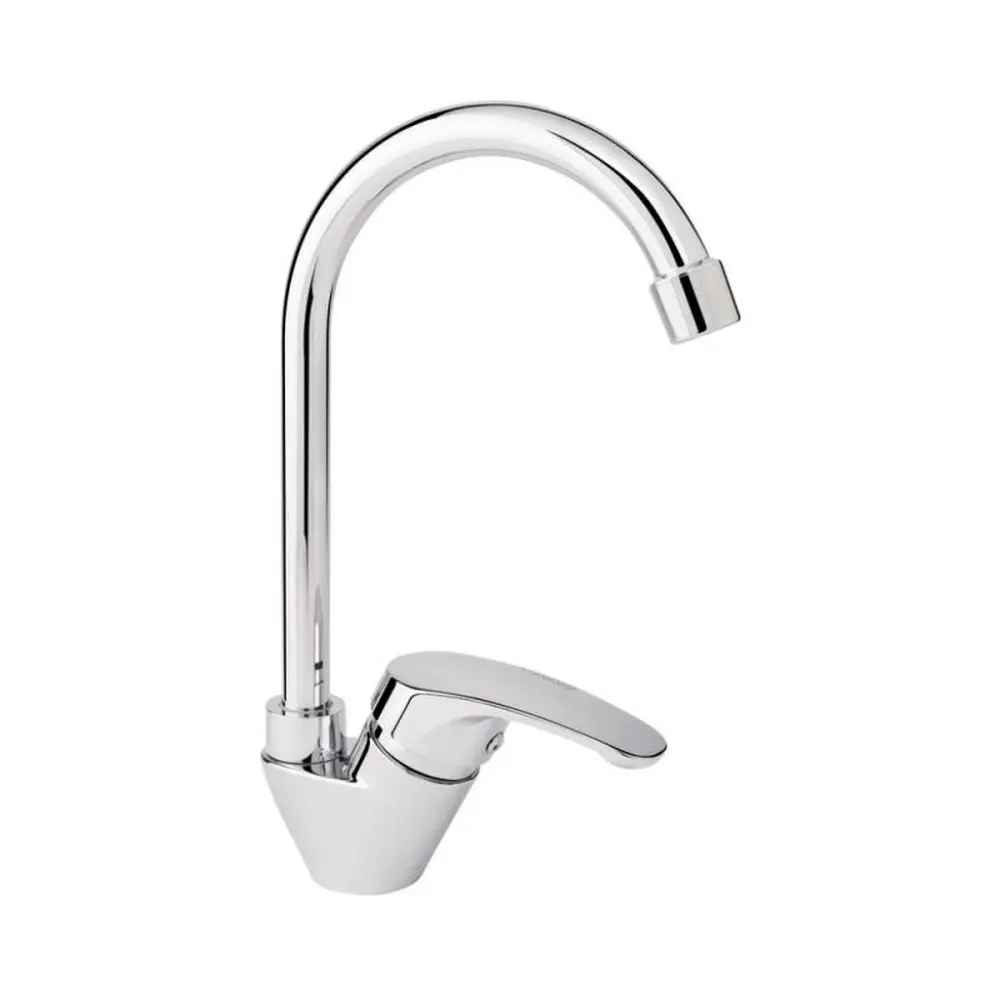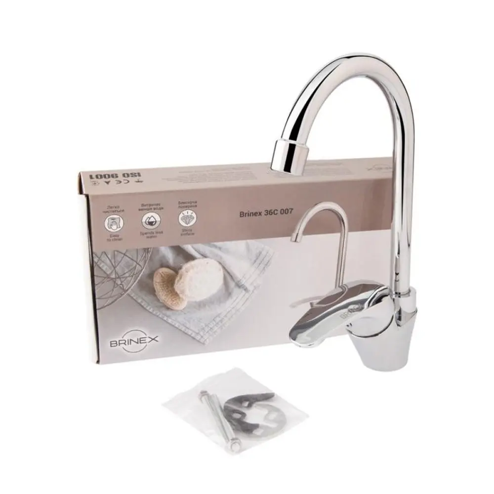 Змішувач для кухонної мийки Brinex 36C 007 виготовлений з ABS пластику. Має одноважільне управління, яке регулює натиск холодної та гарячої води. Виконаний в сучасному, стриманому дизайні з глянсовою хромованою поверхнею. Такий змішувач можна назвати універсальним, бо він буде ідеально виглядати в будь-якому інтер‘єрі кухні.