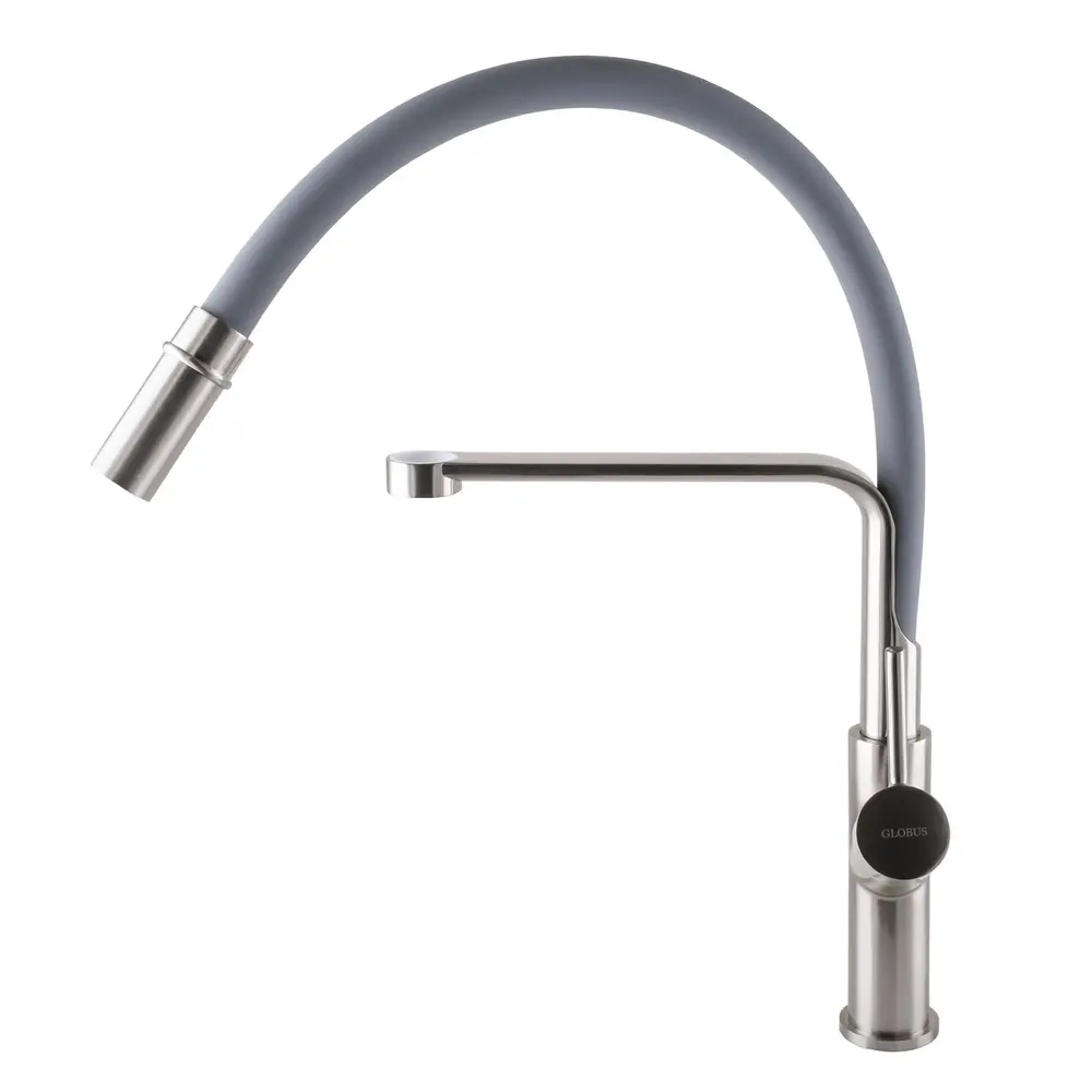 Змішувач для кухні Globus Lux DENVER Flex GDF-32-08-02 Сталь-Сірий Гофровилив, латунь