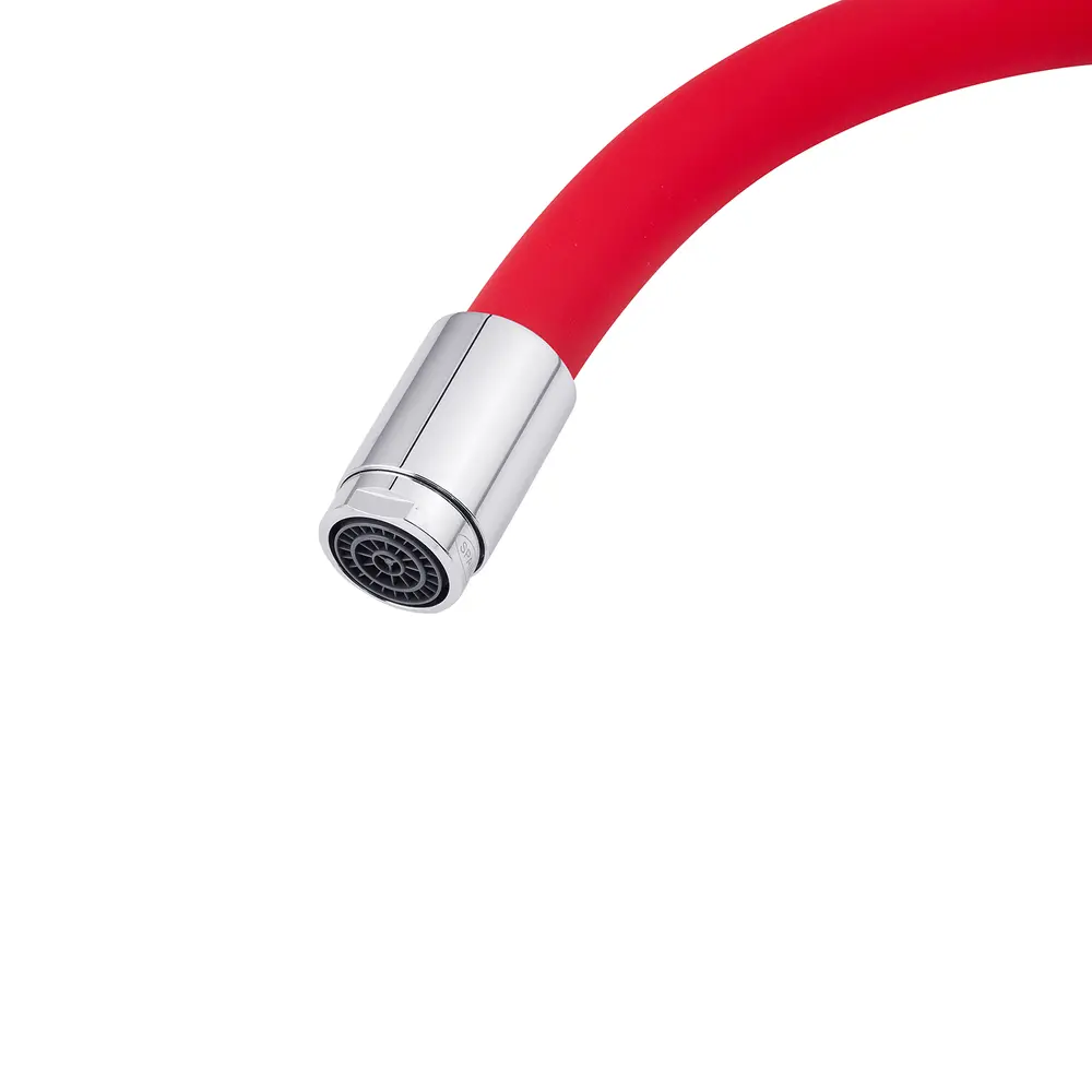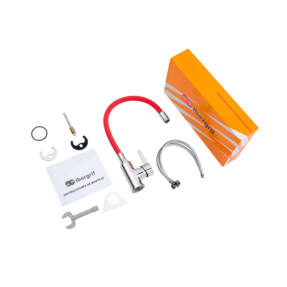 Смеситель для кухни Ibergrif M22112-1 с рефлекторным изливом станет находкой для тех, кого не устраивают стандартные решения с поворотным гусаком. Купив кран, вы сможете направить поток воды в нужном направлении. При этом не придется держать излив в руках: он сохраняет заданную форму благодаря специфической внутренней конструкции. Корпус выполнен из латуни, что позволяет выдерживать перепады температуры. Хромированное покрытие защищает основной материал от коррозии и повреждений, тем самым придает элегантности внешнему виду смесителя. Излив имеет силиконовое красное покрытие. Запорный элемент - керамический картридж диаметром 35 мм. Подключается к трубопроводу двумя гибкими подводками, которые идут в комплекте вместе с крепежным элементом, аэратором и резиновыми прокладками.