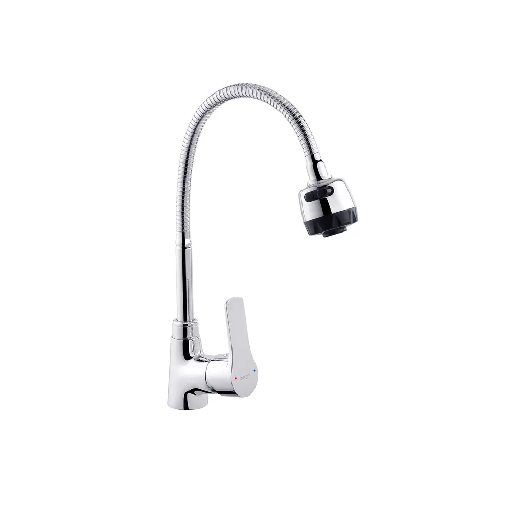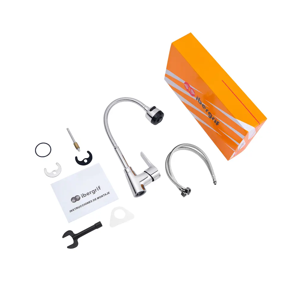 Смеситель для кухни Ibergrif Star M14357 с рефлекторным изливом обеспечит удобное мытье посуды и легкую уборку кухонной мойки. Особенностью модели является гибкая конструкция излива, которая позволяет регулировать его высоту и наклон. Специальная система соединения звеньев делает излив прочным и устойчивым к частым трансформациям. Корпус изготовлен из особо прочной латуни, а аэратор из высококачественного ABS пластика. Фирменный керамический картридж диаметром 35 мм гарантирует бесперебойную работу смесителя. Для равномерного и практически бесшумного потока воды предусмотрен аэратор с 2 режимами подачи воды.
