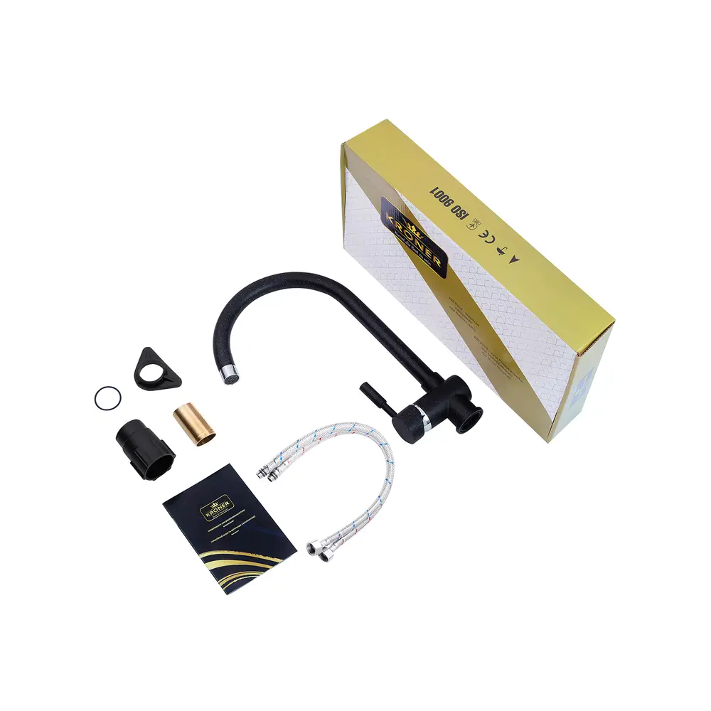Кухонные смесители от KRONER – это немецкое качество, технология и надежность. Современный дизайн станет удачным дополнением интерьера кухни. Изготовление из качественных материалов, не поддающихся коррозии, легкость в сборке не доставит хлопот при монтаже и использовании. Имеют поворотное излияние и устанавливается на одно отверстие с подводом воды с помощью гибких шлангов М10х1/2". Шланги для подключения входят в комплект. Данная модель изготовлена из силумина.