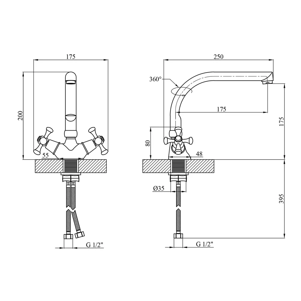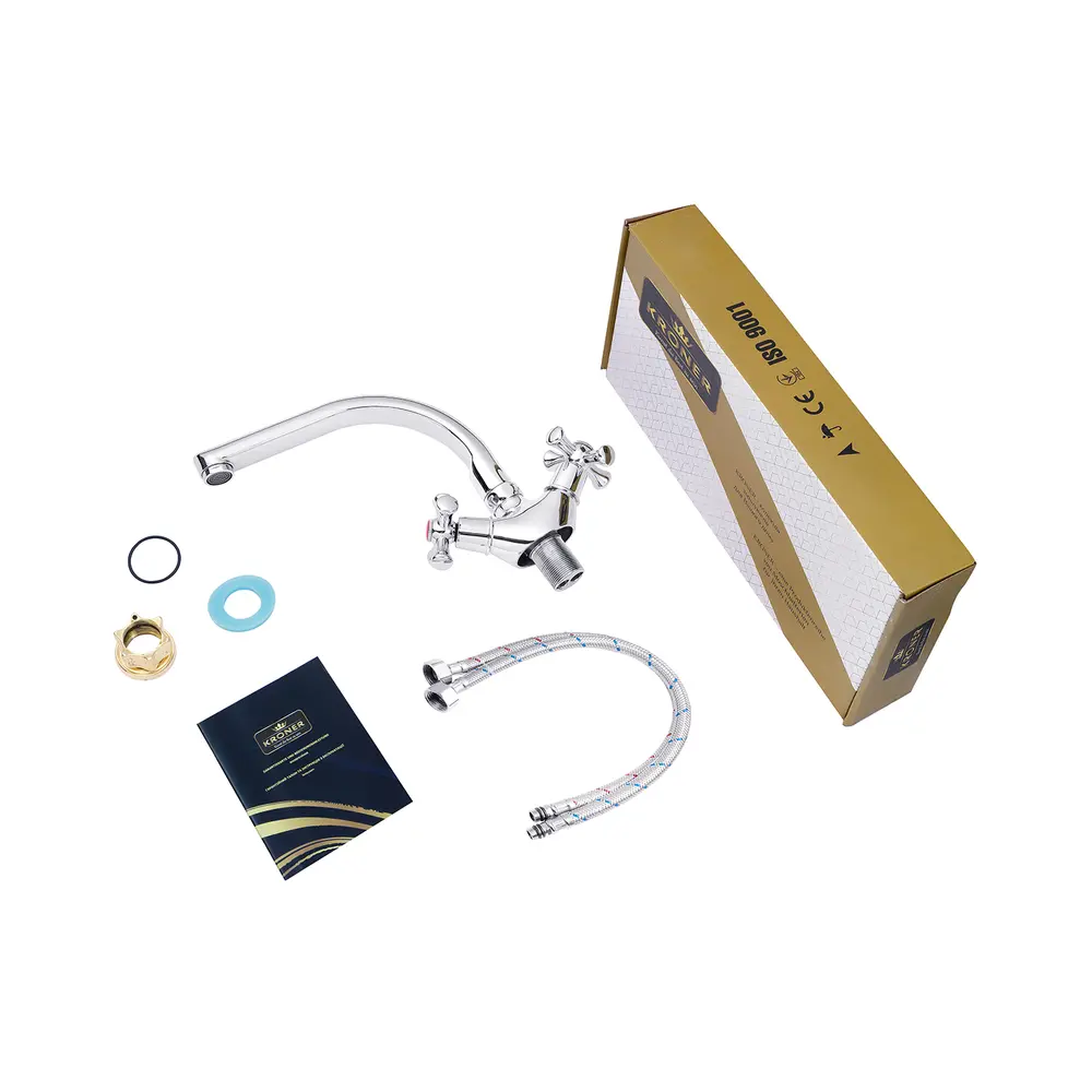 Кухонные смесители от KRONER – это немецкое качество, технология и надежность. Современный дизайн станет удачным дополнением интерьера кухни. Изготовление из качественных материалов, не поддающихся коррозии, легкость в сборке не доставит хлопот при монтаже и использовании. Имеют поворотное излияние и устанавливается на одно отверстие с подводом воды с помощью гибких шлангов М10х1/2". Шланги для подключения входят в комплект. Данная модель изготовлена из силумина.