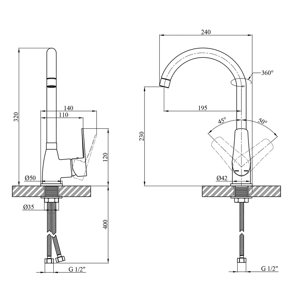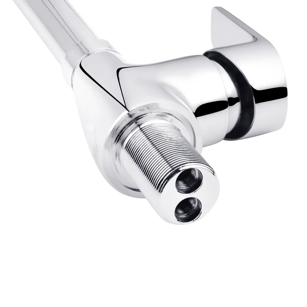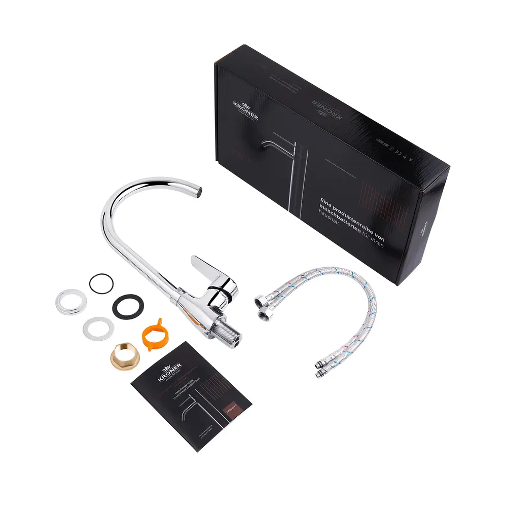 Кухонные смесители от KRONER – это немецкое качество, технология и надежность. Современный дизайн станет удачным дополнением интерьера кухни. Изготовление из качественных материалов, не поддающихся коррозии, легкость в сборке не доставит хлопот при монтаже и использовании. Имеют поворотное излияние и устанавливается на одно отверстие с подводом воды с помощью гибких шлангов М10х1/2". Шланги для подключения входят в комплект. Данная модель изготовлена из латуни.