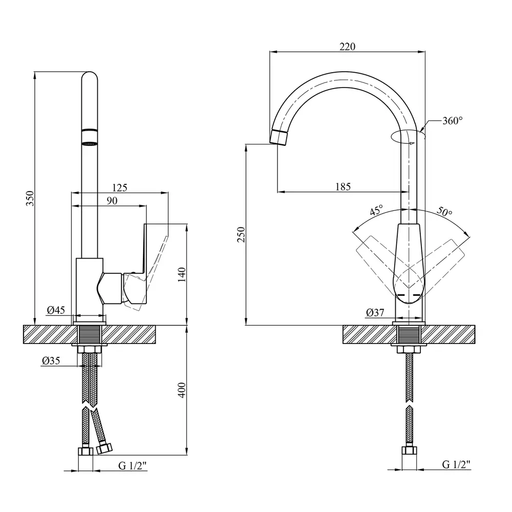 Змішувач, гнучка підводка, кріплення, інструкція.