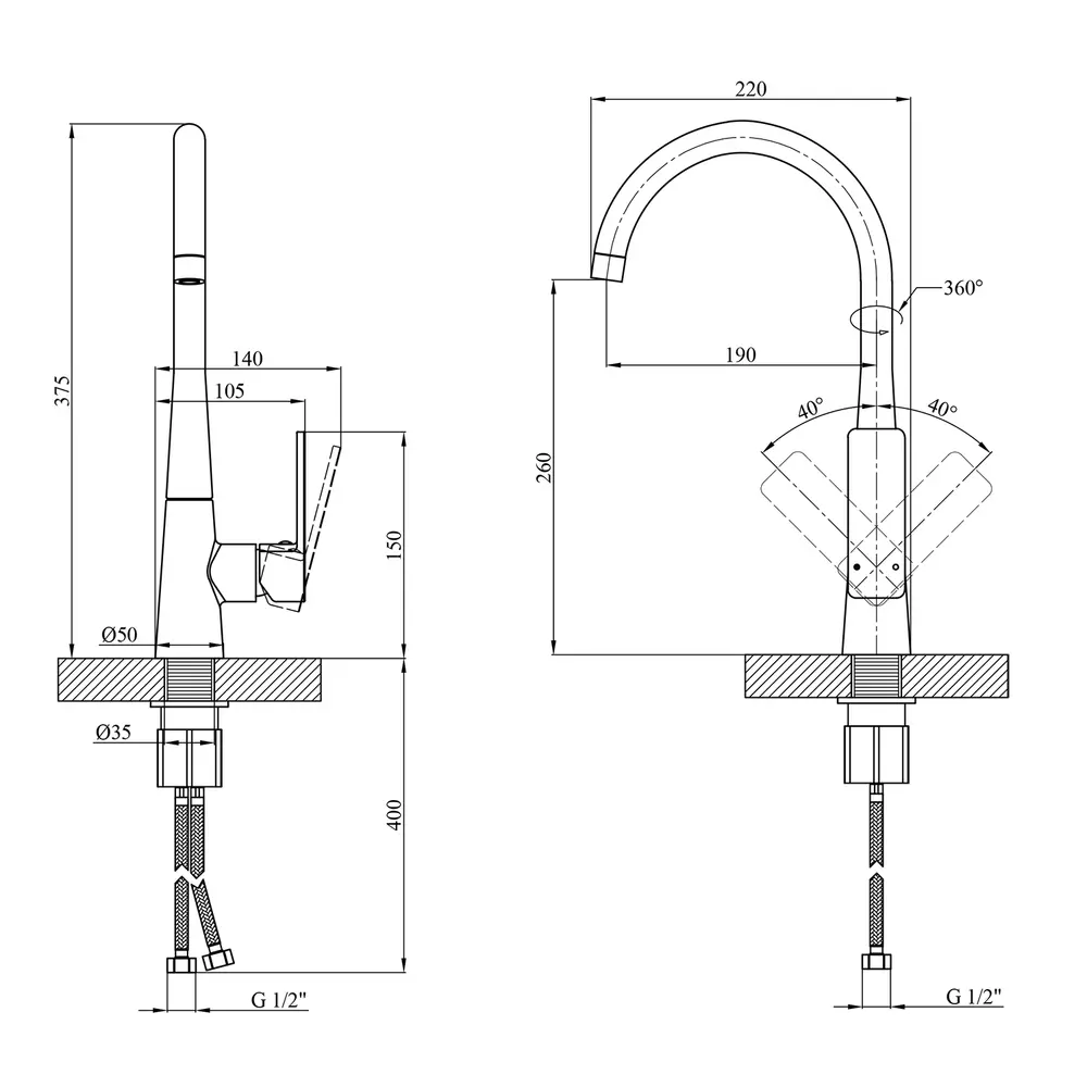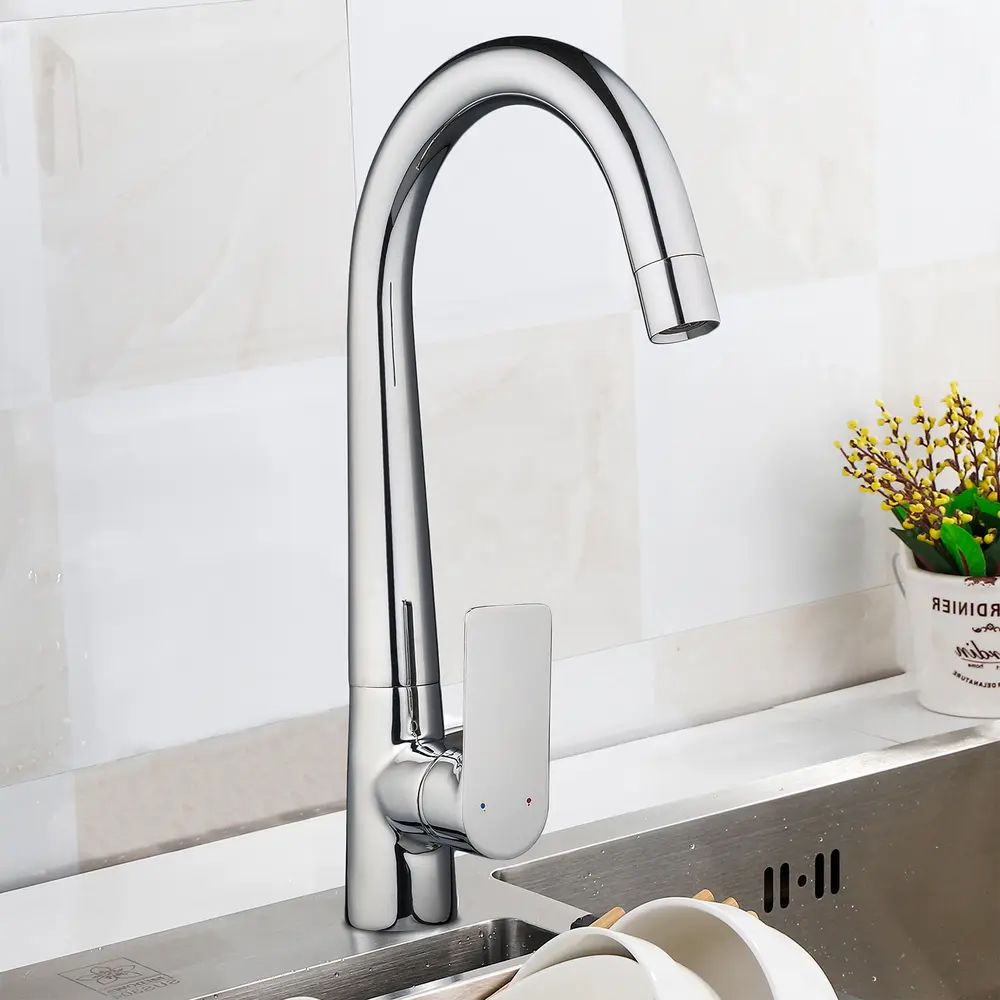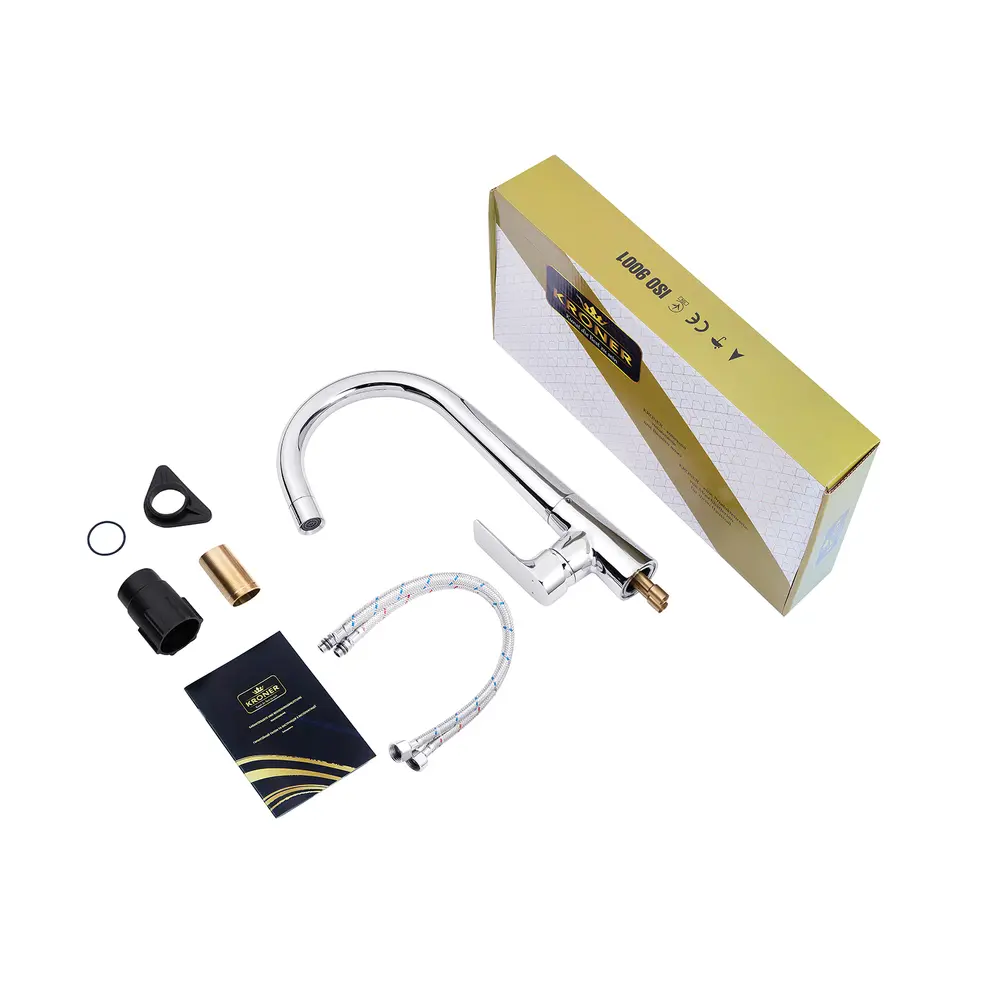 Кухонные смесители от KRONER – это немецкое качество, технология и надежность. Современный дизайн станет удачным дополнением интерьера кухни. Изготовление из качественных материалов, не поддающихся коррозии, легкость в сборке не доставит хлопот при монтаже и использовании. Имеют поворотное излияние и устанавливается на одно отверстие с подводом воды с помощью гибких шлангов М10х1/2". Шланги для подключения входят в комплект. Данная модель изготовлена из латуни.