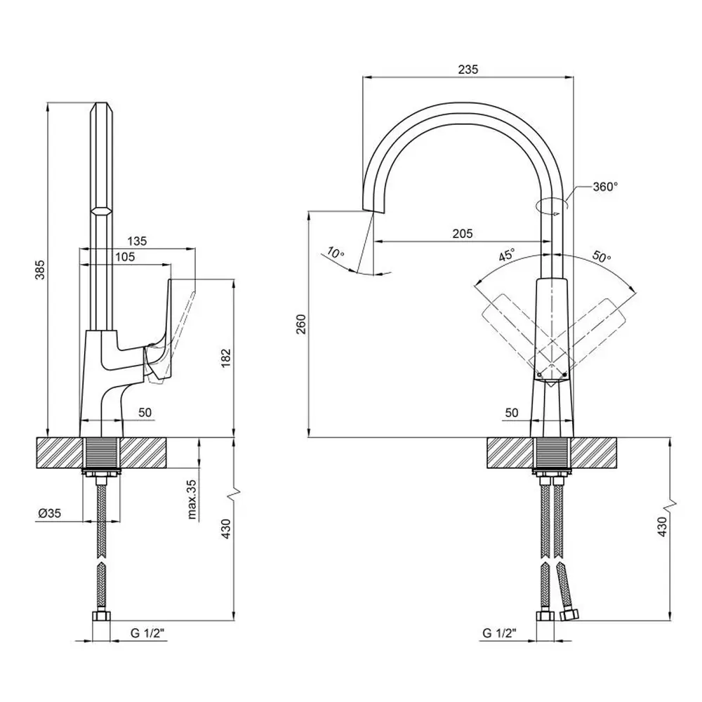 Змішувач, гнучкий підвід, кріпильні деталі.
