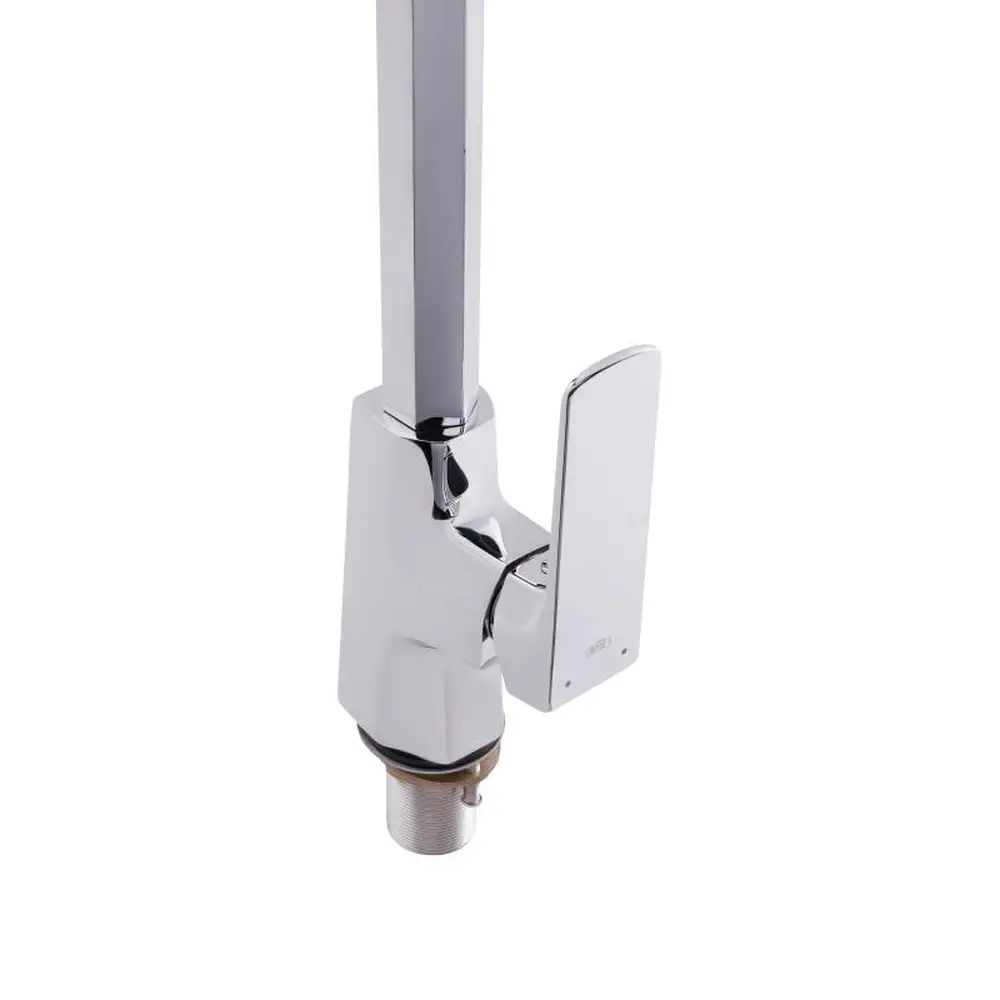 Змішувач для кухні Qtap Matice 9063103C виготовлено з високоякісної харчової латуні, що не схильна до корозії, стійка до ударів і появи тріщин. Глянцеве хромоване покриття не тільки збільшує довговічність змішувача, а й надає йому привабливості. Змішувач має одноважільне управління, за допомогою якого можна відрегулювати температуру і натиск води. Виріб виконано в сучасному стилі і ідеально підійде до будь-якого інтер‘єру кухні.