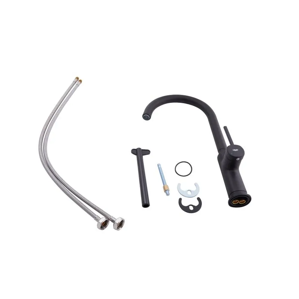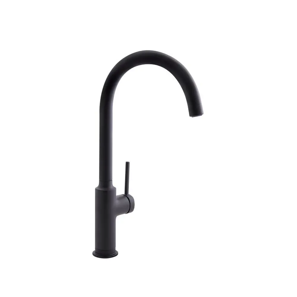 Змішувач для кухні Qtap Robin 9060102B виготовлений з високоякісної харчової латуні, яка не схильна до корозії, стійка до ударів і появи тріщин. Матове чорне покриття не тільки підвищує довговічність змішувача, але й надає йому привабливості. Змішувач має одноважільне управління, за допомогою якого можна відрегулювати температуру та напір води. Виріб виконано у сучасному стилі та ідеально впишеться у будь-який інтер‘єр кухні.