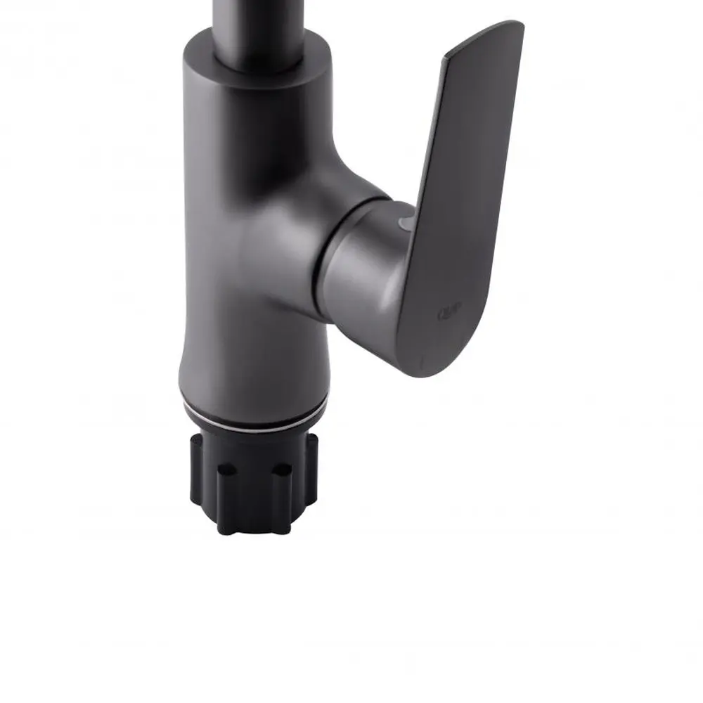 Змішувач для кухні Qtap Zelnava 9050101FG виготовлений з високоякісної харчової латуні, що не схильна до корозії, стійка до ударів і появи тріщин. Брашоване графітове покриття не тільки підвищує довговічність змішувача, а й надає йому привабливості. Змішувач має важільне керування, за допомогою якого можна відрегулювати температуру і натиск води. Змішувач виконаний в сучасному стилі, він ідеально доповнить в інтер‘єр кухні.
