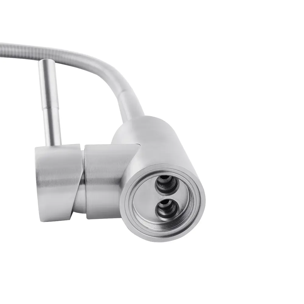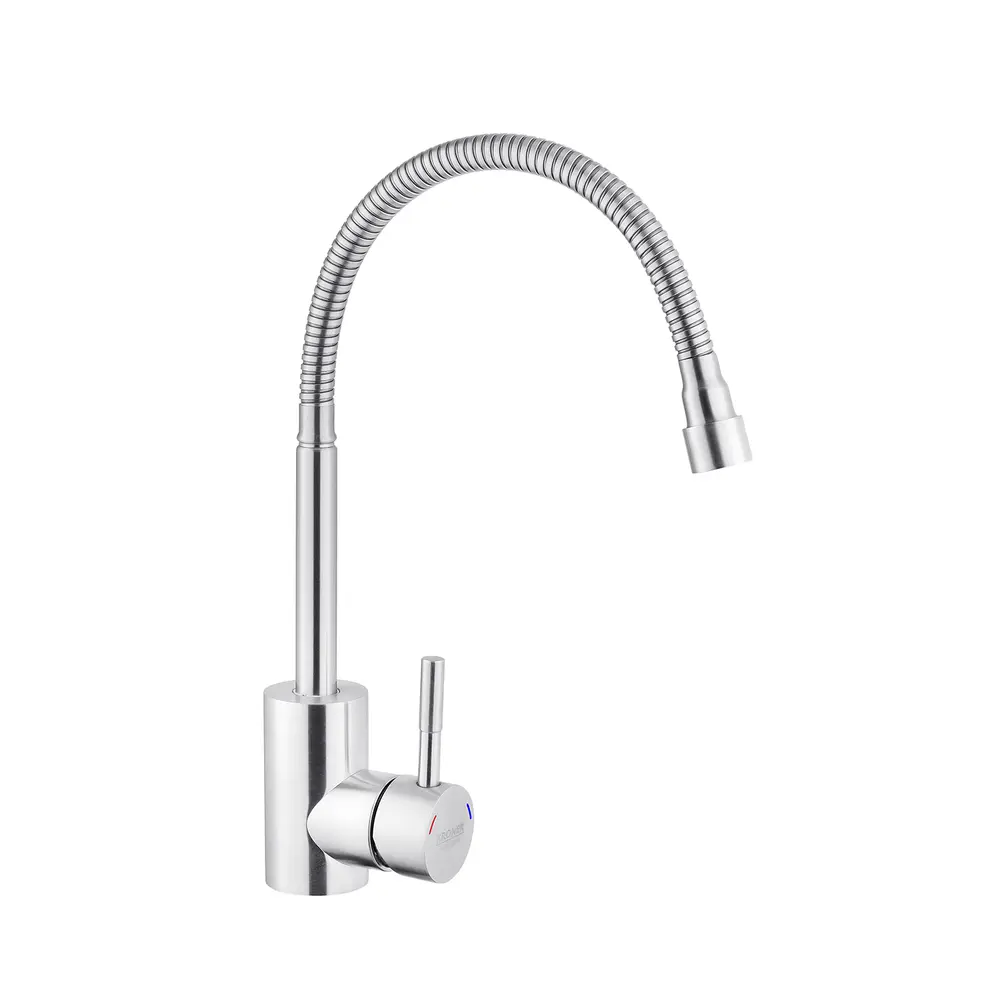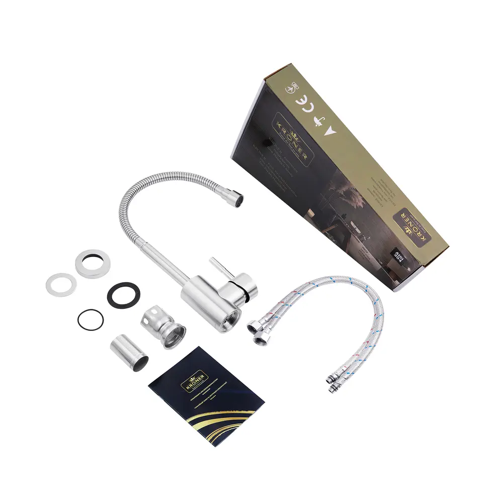 Кухонные смесители от KRONER – это немецкое качество, технология и надежность. Современный дизайн станет удачным дополнением интерьера кухни. Изготовление из качественных материалов, не поддающихся коррозии, легкость в сборке не доставит хлопот при монтаже и использовании. Имеют поворотное излияние и устанавливается на одно отверстие с подводом воды с помощью гибких шлангов М10х1/2". Шланги для подключения входят в комплект. Данная модель изготовлена из нержавеющей стали AISI 304.