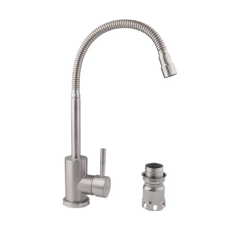 Рефлекторний змішувач для кухні Imperial 31-107-13 виготовлений з нержавіючої сталі. Завдяки нікельованій брашованій поверхні має оригінальний зовнішній вигляд. Виконаний в сучасному стриманому стилі. Рефлекторний вилив є кращим рішенням на кухні: за допомогою нього можна змінювати напрям струменя і режим, а також висоту і кут нахилу. Такий змішувач не тільки зручний та практичний, а й ідеально доповнить інтер‘єр кухні. Після виточування вироби не проходять додаткове шліфування.
