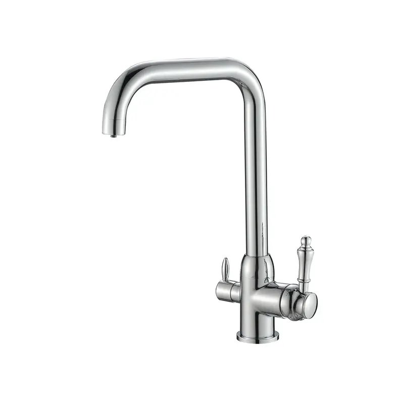 • З одним виливом та окремими каналами для звичайної і фільтрованої води – виглядає, як стандартний змішувач, але має додаткову ручку для керування очищеною водою.