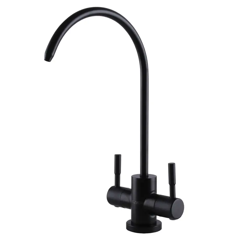 • З одним виливом та окремими каналами для звичайної і фільтрованої води – виглядає, як стандартний змішувач, але має додаткову ручку для керування очищеною водою.