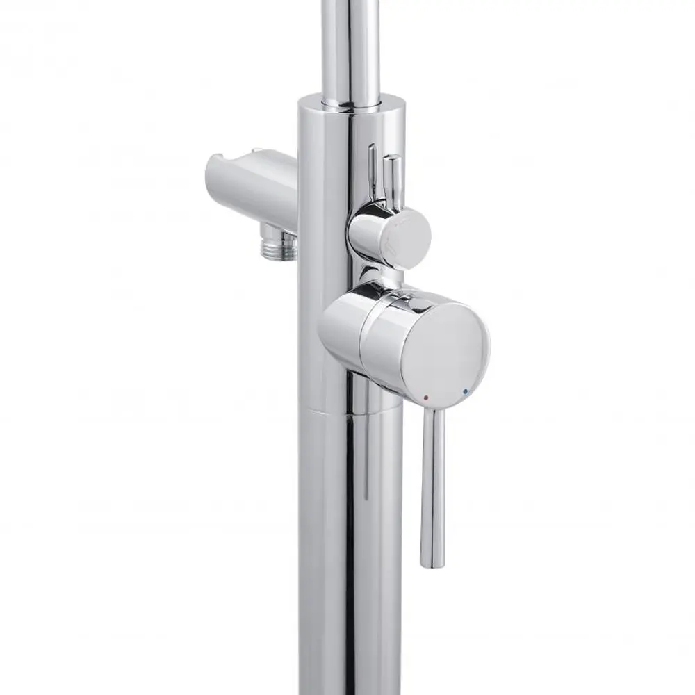 Підлоговий змішувач для ванни Qtap Podlaha 19103UGC виготовлений зі зносостійких латуні та нержавіючої сталі. Завдяки рівномірному хромованому покриттю виріб має привабливий зовнішній вигляд і стійкий до механічних пошкоджень. Змішувач комплектується душовою лійкою з інтегрованим у штангу тримачем та душовим шлангом. Подача води регулюється за допомогою джойстика, а перемикання у душовий режим - дивертором. Такий змішувач вигідно підкреслить інтер‘єр з ванною, що розташована посеред кімнати.