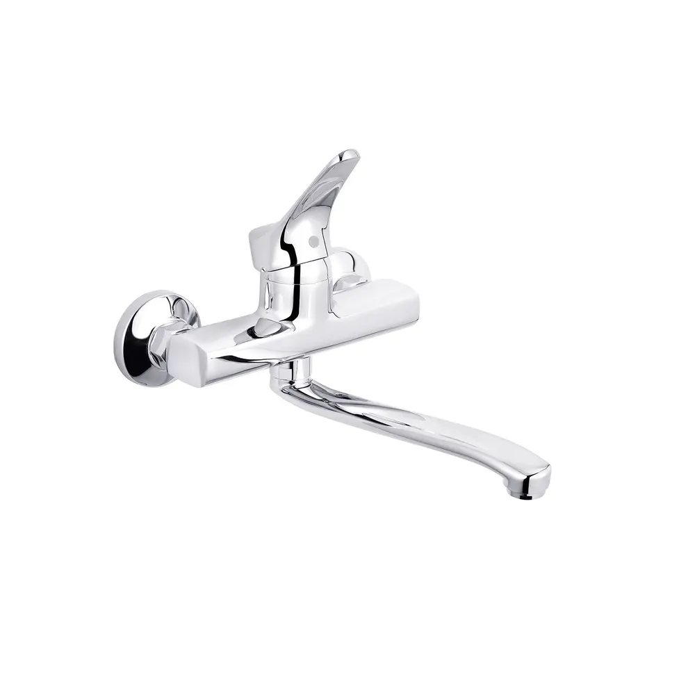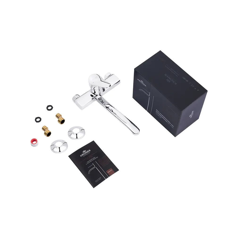 Кухонные смесители от KRONER – это немецкое качество, технология и надежность. Современный дизайн станет удачным дополнением интерьера кухни. Изготовление из качественных материалов, не поддающихся коррозии, легкость в сборке не доставит хлопот при монтаже и использовании. Имеют поворотное излияние и устанавливается с помощью эсцентриков к стене. Данная модель изготовлена из латуни.
