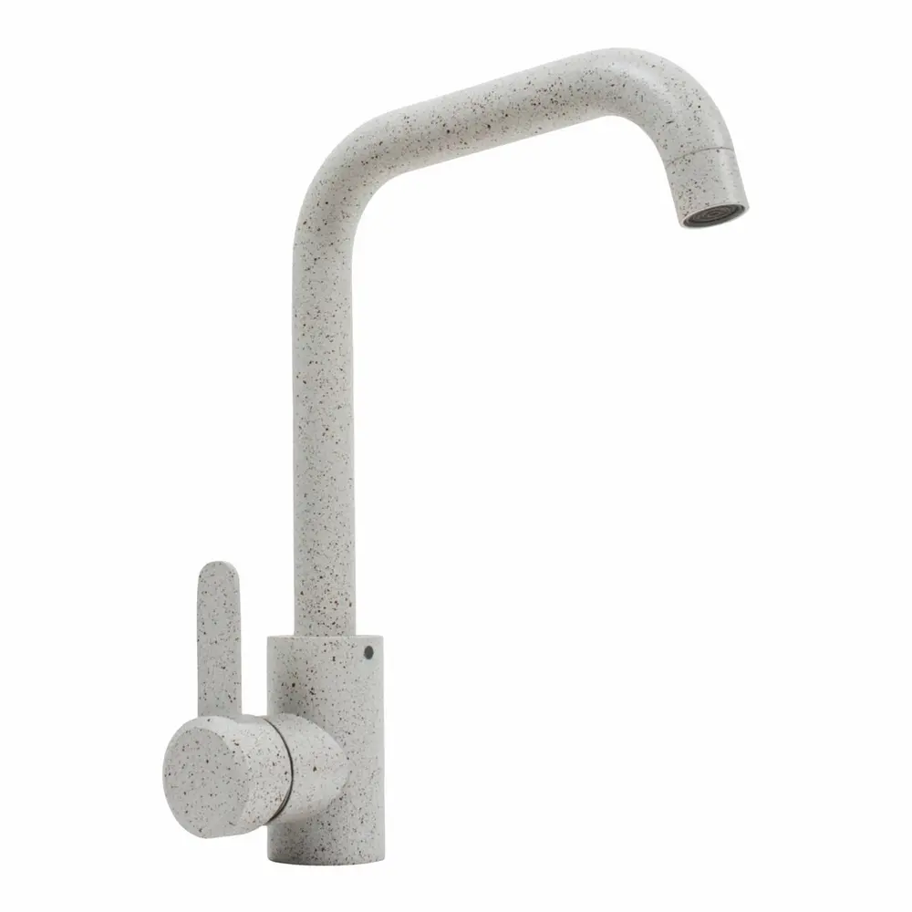 Кухонный смеситель Platinum хорошо сочетается с разными формами кухонных моек. Он имеет поворотное длинное излияние, что облегчает мытье посуды и набор воды в большие емкости.