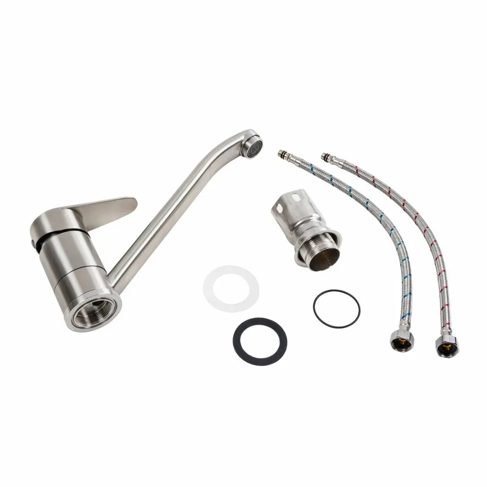 Длина излива – 90 мм, что делает его идеальным для использования в разных размерах моек и кухонных пространств. Гибкая подводка и крепеж входят в комплект, обеспечивая легкость установки.